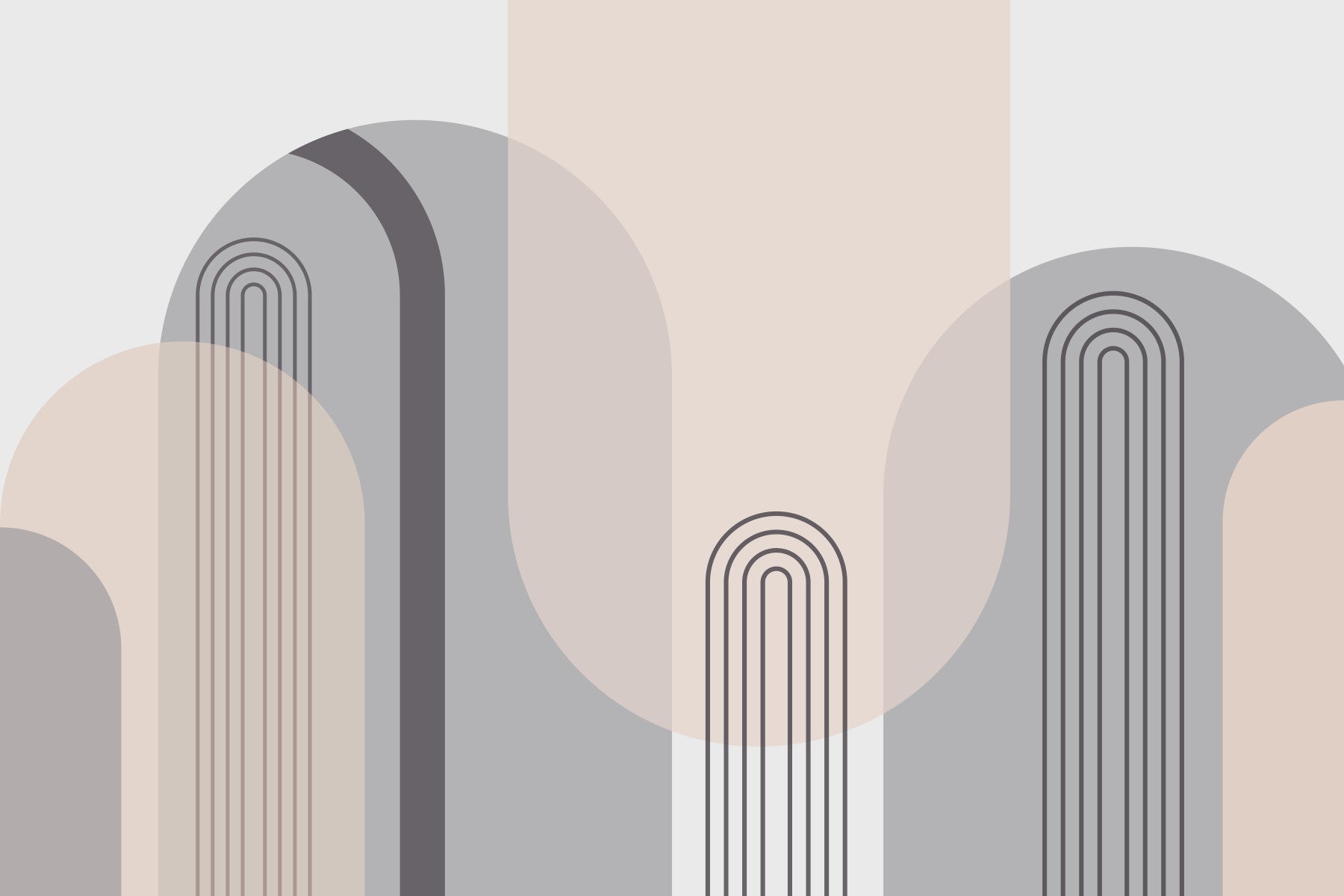 Transform your interior with this calming abstract design. Soft curves and geometric elements combine in a harmonious composition. The color scheme uses a gentle mix of light grays, creams, and subtle rose hues. This wallpaper for walls provides a modern look for spaces like living rooms, bedrooms, or hallways. This abstract design creates a serene and inviting atmosphere. It complements interiors with a touch of elegance, offering a stylish backdrop without being visually loud. Perfect for those seeking a minimalist yet stylish design.