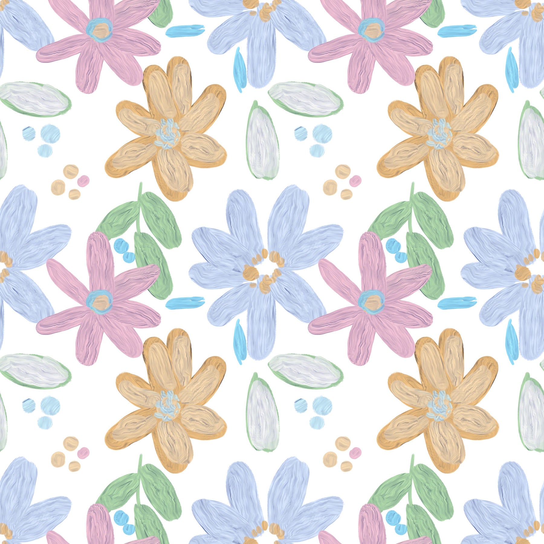 A beautiful cute impasto oil painted floral pattern wallpaper mural.