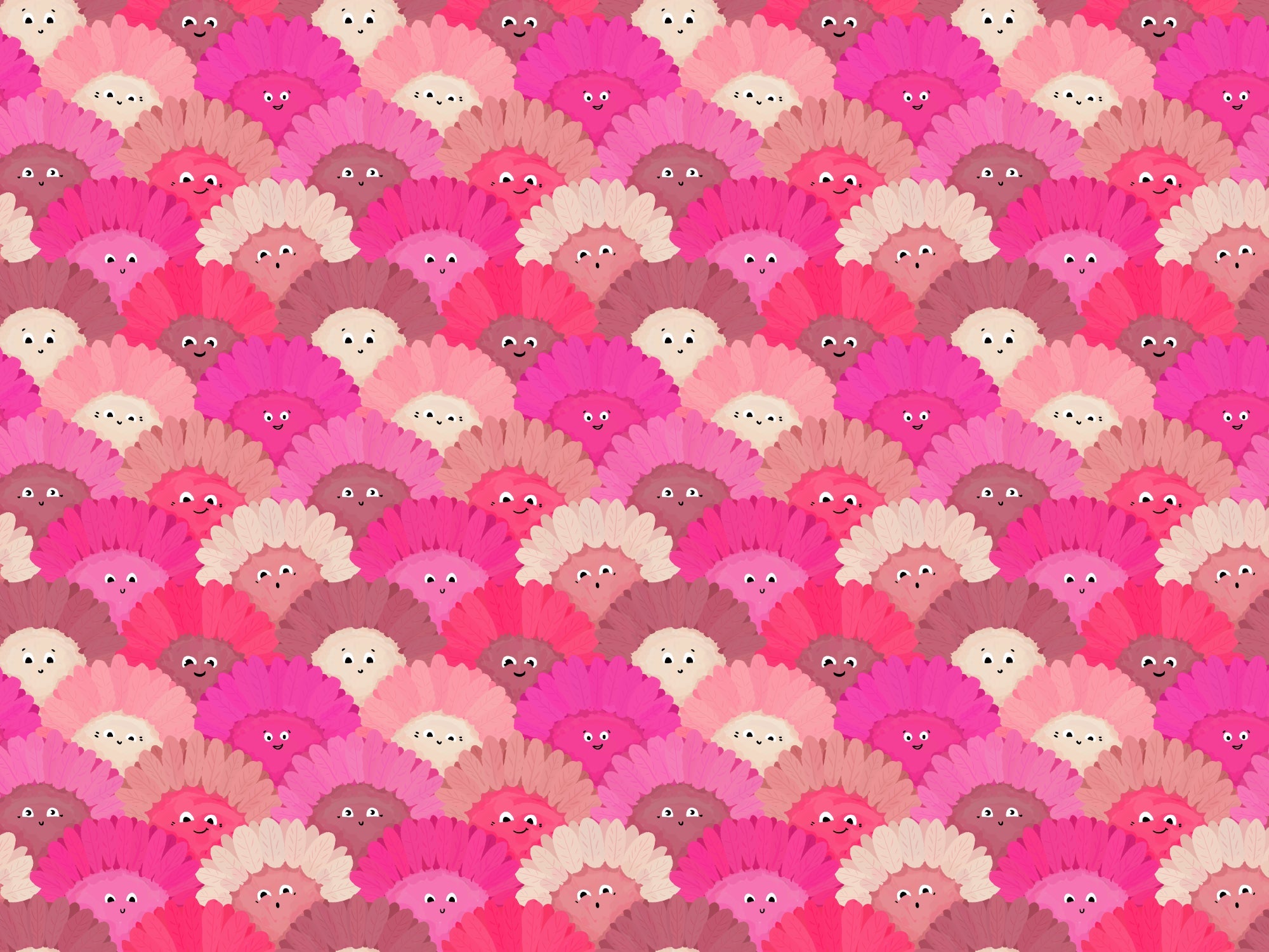 Adorable cute pink flower faces wallpaper for playful interiors.