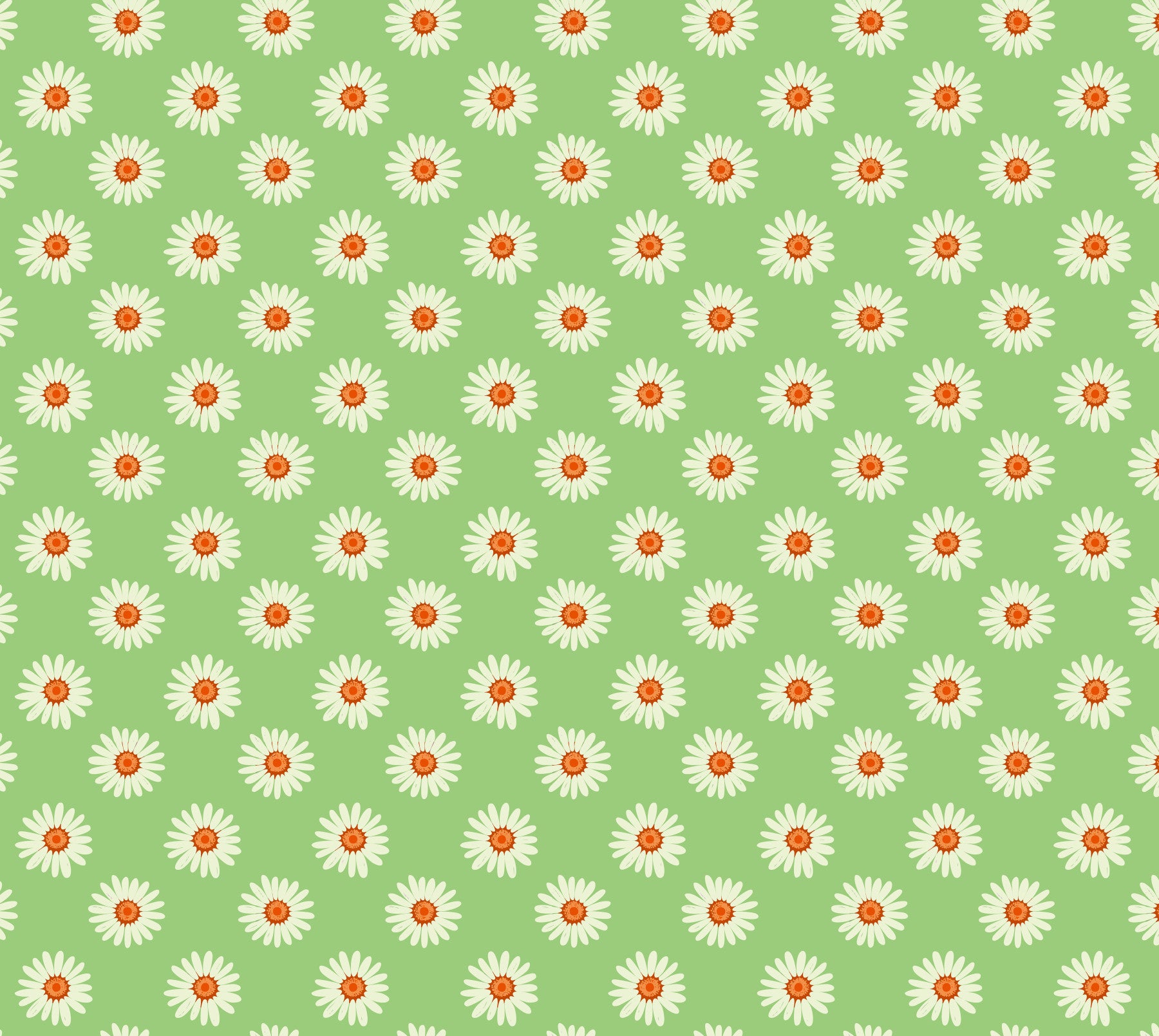 Embrace the charm of nature with Daisies on Green a delightful wallpaper that brings the freshness of a sun-drenched meadow to your screen. This whimsical design features a repeating pattern of vibrant daisies, each with crisp white petals and a warm, inviting orange center, all set against a soothing green backdrop. The color palette evokes a sense of tranquility and rejuvenation, creating a calming yet cheerful atmosphere. Perfect for adding a touch of springtime joy to any device, "Daisies on Green" is an ideal choice for those seeking a light, airy, and naturally beautiful aesthetic. Let this charming floral pattern brighten your day and inspire a sense of peace and serenity. This wallpaper is an excellent choice for bringing a fresh, organic feel to your digital space.
