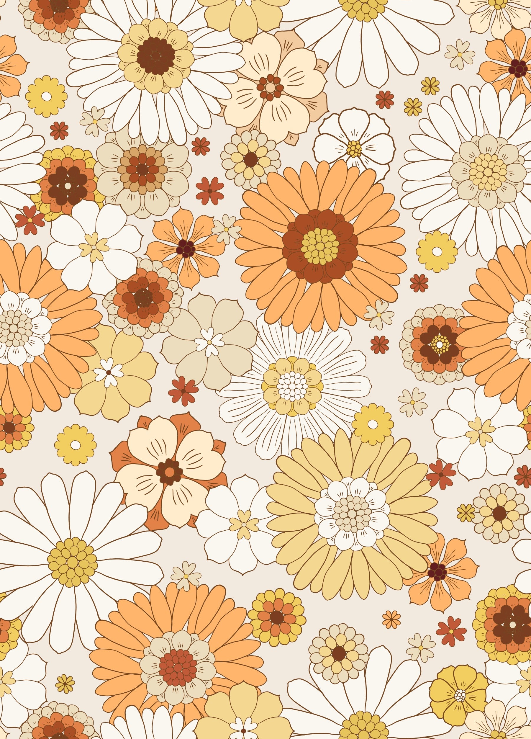 daisy festival - 1970s warm floral Wallpaper⁠