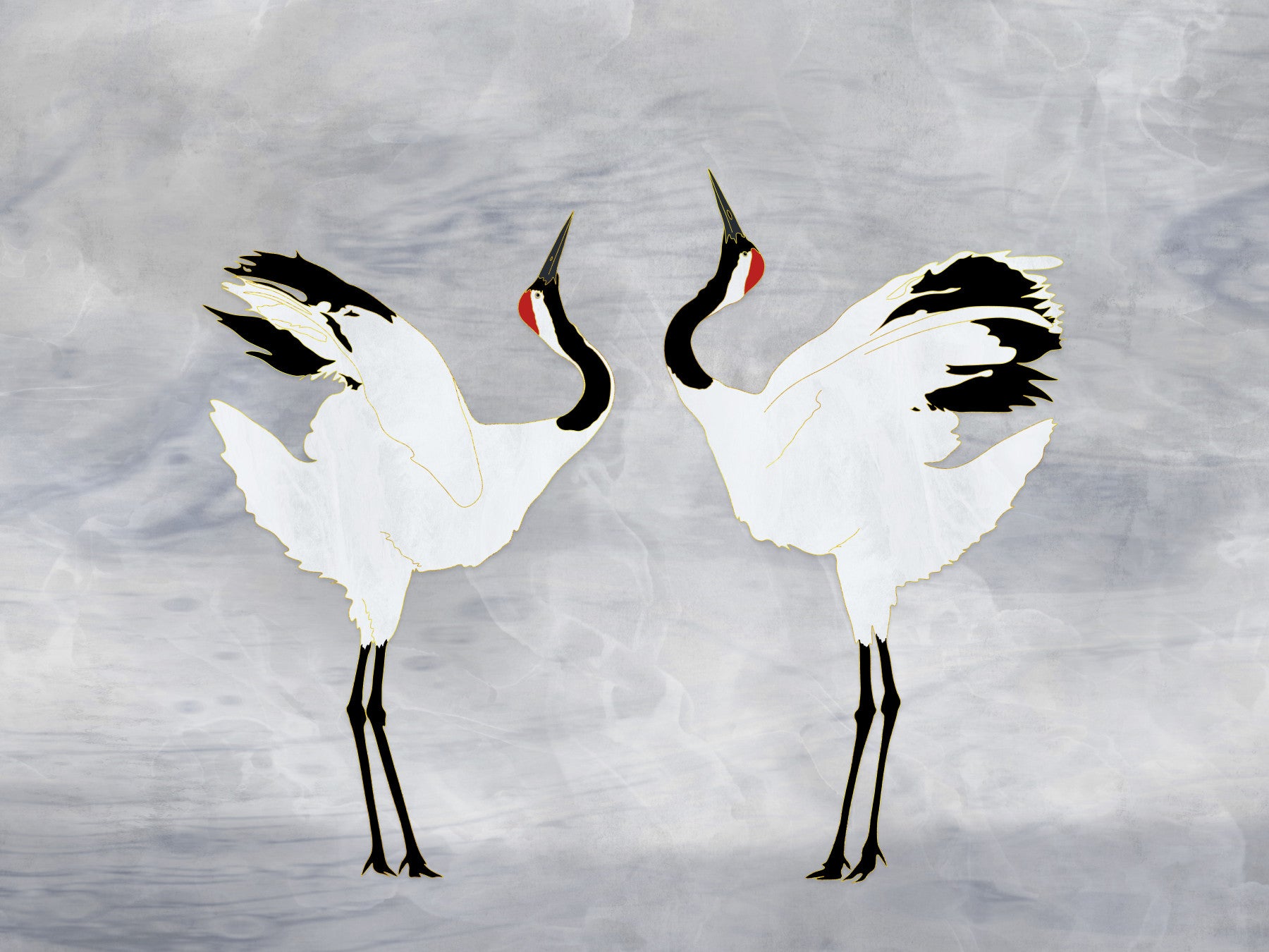 Japanese style crane illustration on the Dancing Cranes print.