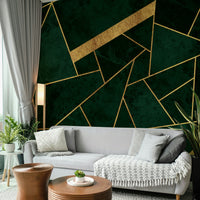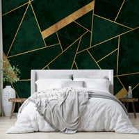 Dark Green Emerald and Gold Mosaic Wall Mural