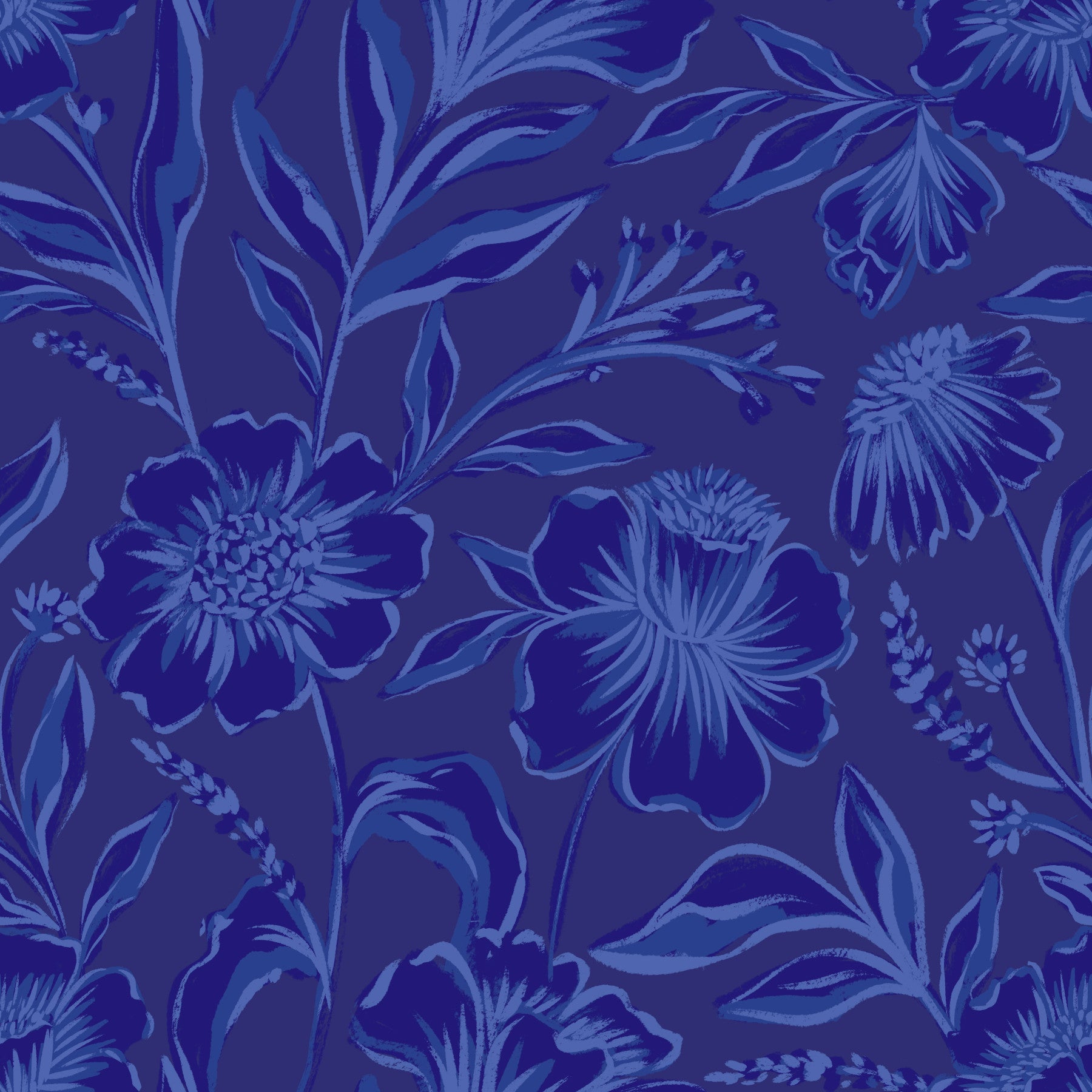 Invite nature indoors with Twilight Blooms, a classic floral pattern. This rich pattern features various flowers on a saturated blue. This wallpaper for walls adds depth and charm to bedrooms and dining rooms. Its monochromatic palette allows for versatility and sophistication. The delicate design balances bold aesthetics with calming visuals. Enliven interiors with the calming atmosphere and elegant design of this botanical option. Install it easily for a quick update or dramatic change in any space. Feel at peace with flowers inside.
