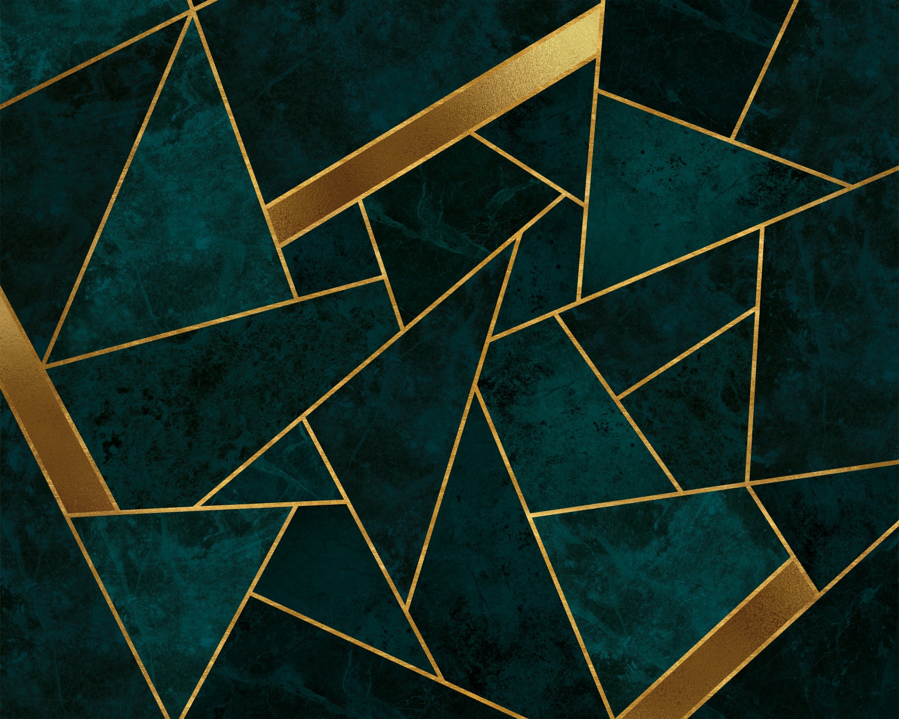 Luxurious dark teal and gold mosaic wallpaper design.