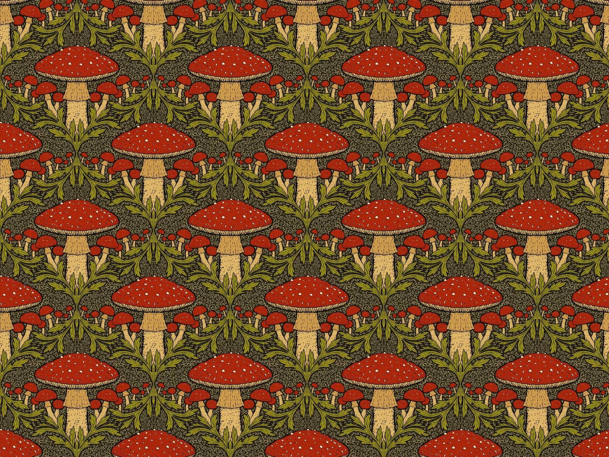 Sophisticated heritage mushroom wallpaper in deep red tones.