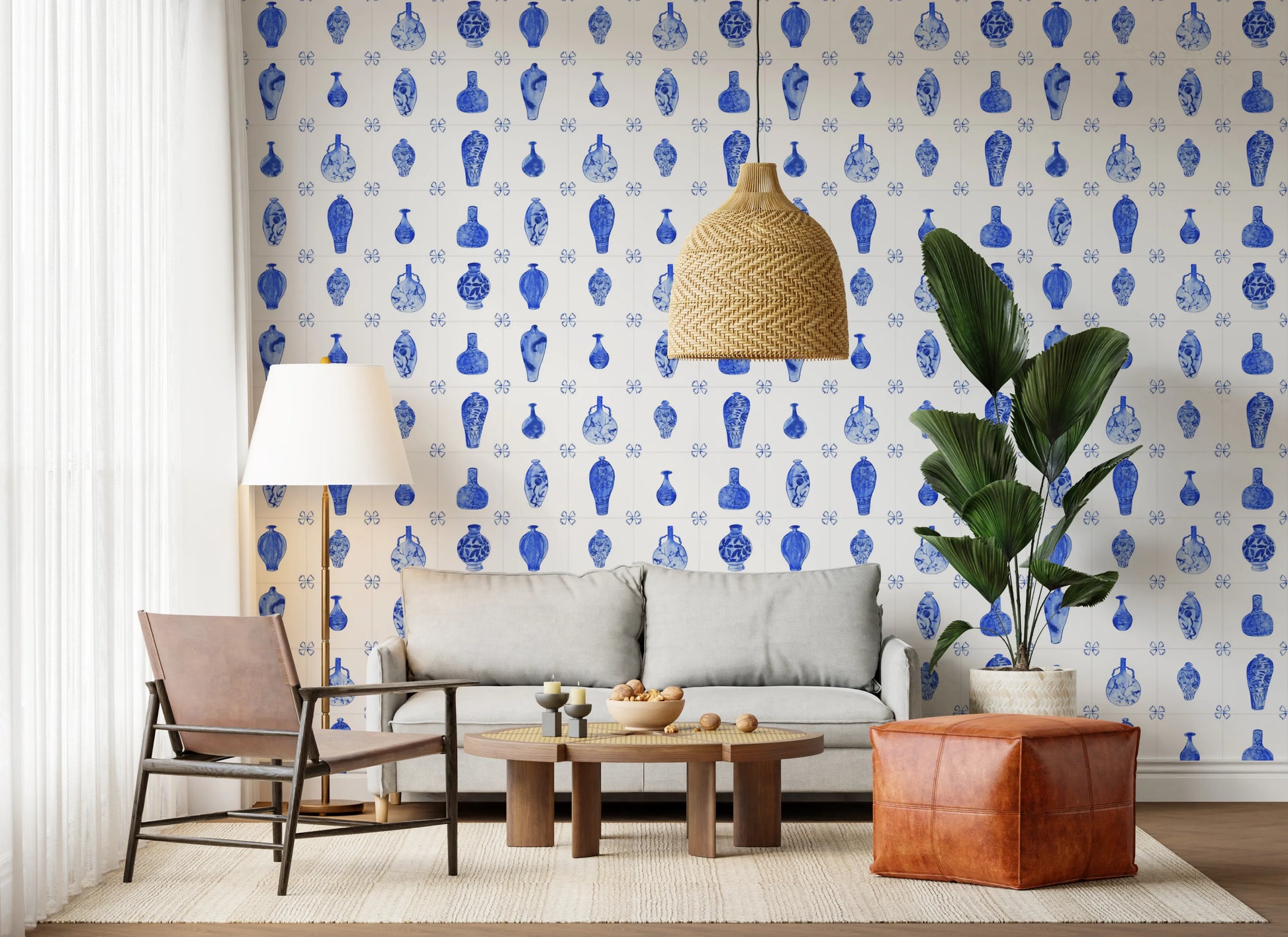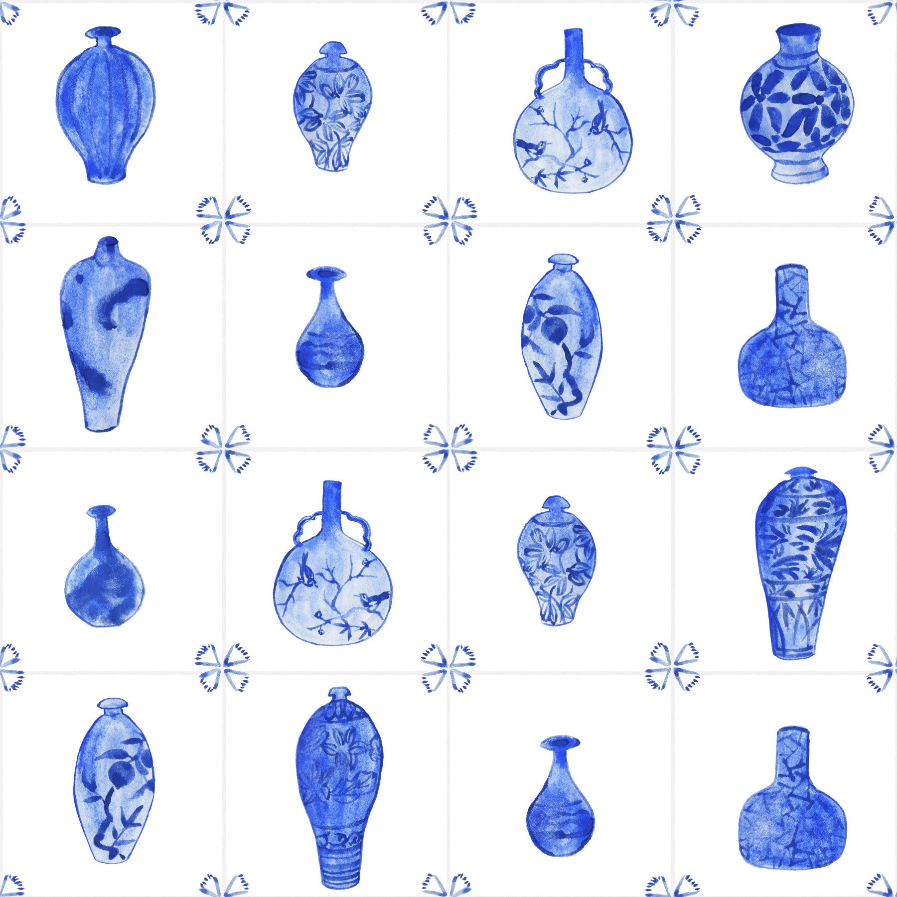 Delft Tile Blue & White Porcelain Wallpaper⁠