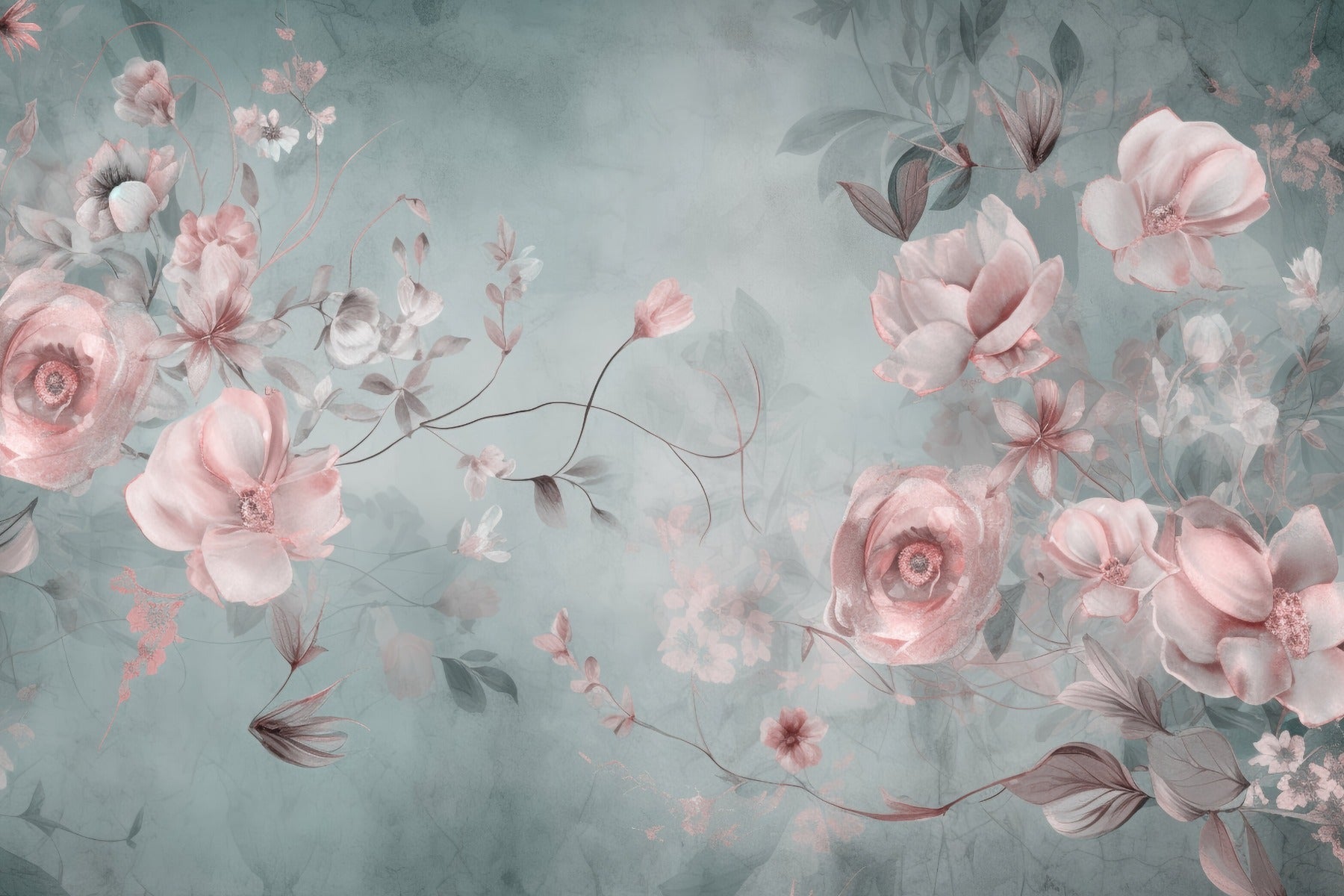 Soft pink flower mural for serene spaces