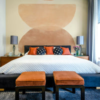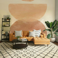 This abstract wallpaper evokes the warm, serene feeling of a desert sunset. The soft watercolor washes in earthy tones of peach, terracotta, and brown create a calming and sophisticated atmosphere. The simple, stacked semicircle shapes are both minimalist and visually engaging, adding a touch of modern elegance to any space. Perfect for bedrooms, living rooms, or home offices seeking a tranquil and stylish backdrop.