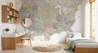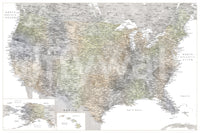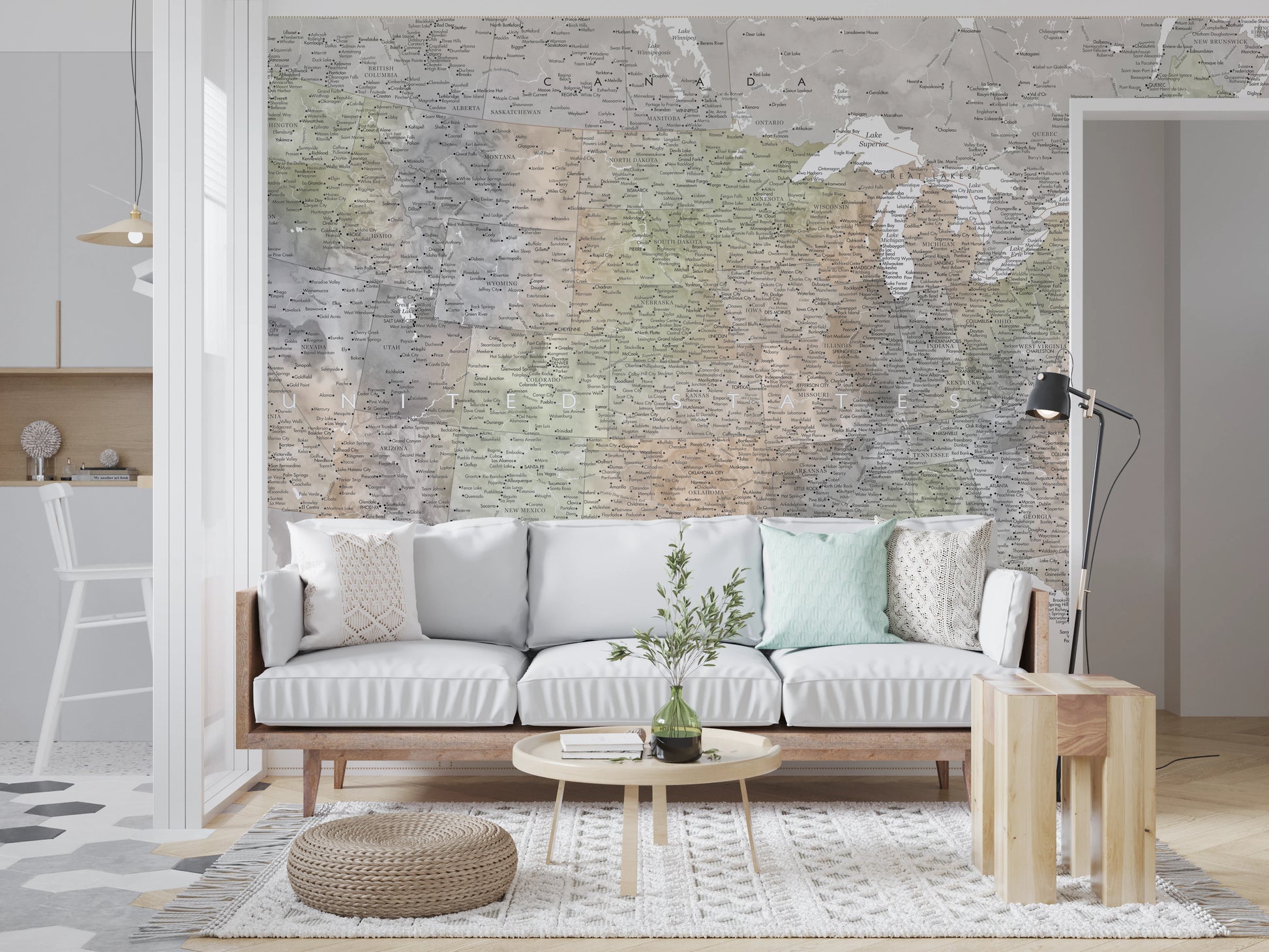 Detailed map of the USA with cities in muted watercolor, HABIKI Wall Mural