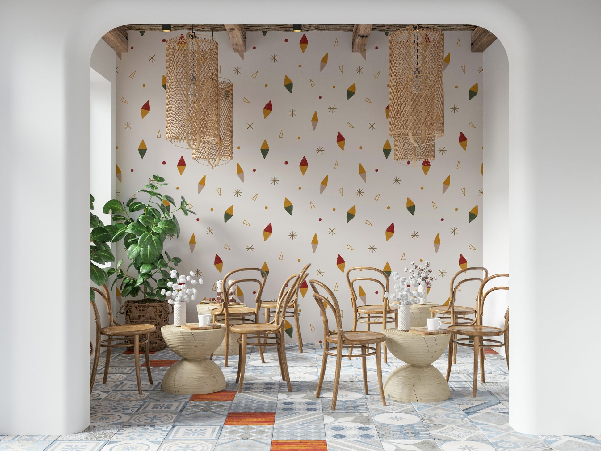 Transform your home with this delightful geometric design. The shapes create an eye-catching pattern over a cream background, giving your space a fun, retro feel. Imagine this diamond print as a statement wallpaper for walls in your living room, bathroom, or kitchen. The colors play well in diverse settings. Consider peel and stick options for easy application and removal, making it great for renters or those who enjoy frequent style changes.