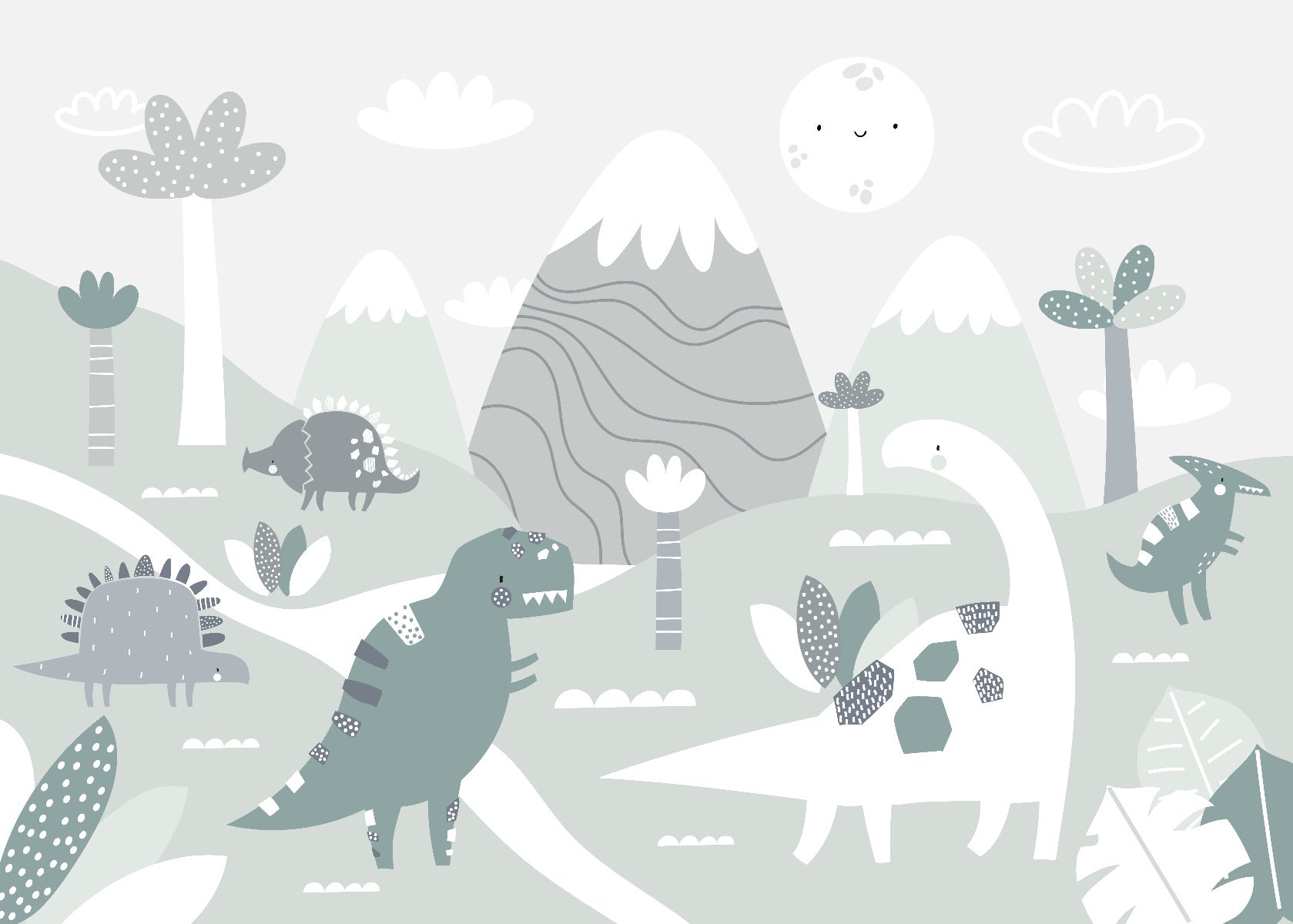 Dinosaur Land Nursery Room Wallpaper Mural