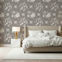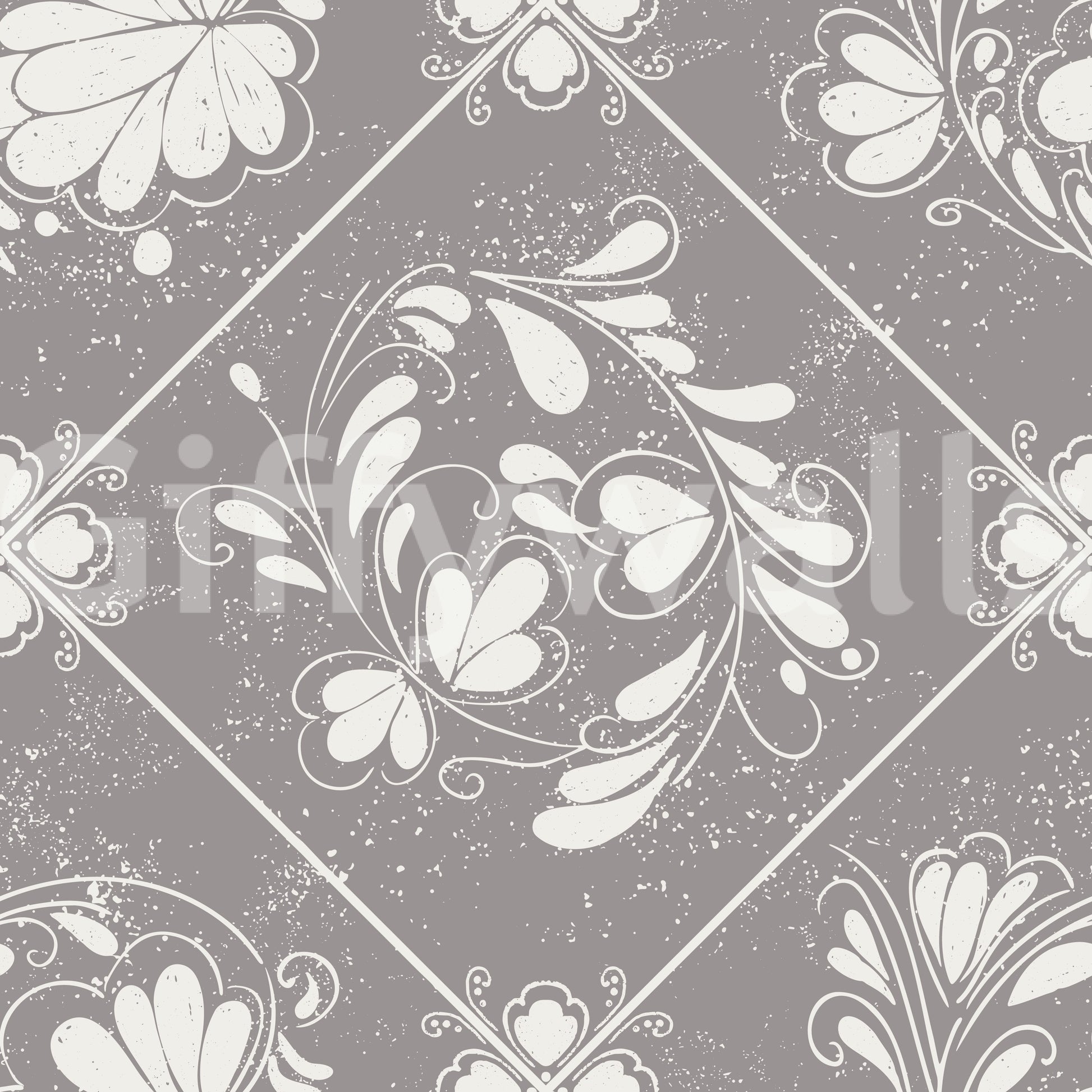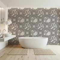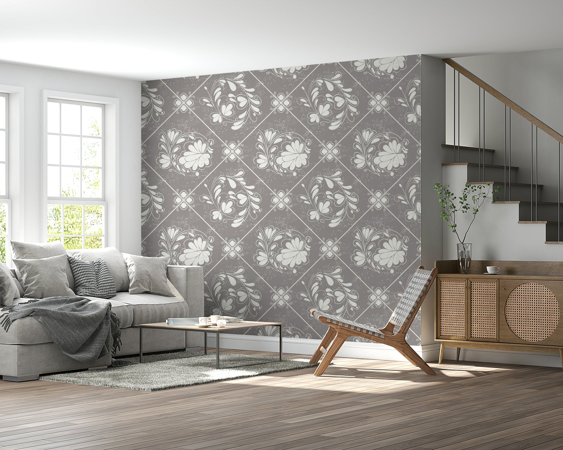 Introduce classic charm with this floral tile-inspired wallpaper for walls. A repeating pattern showcases stylized white flowers and foliage on a textured gray background. This design offers a subtle, vintage-inspired aesthetic that complements various interior styles. Its neutral color palette works beautifully in living rooms, bedrooms, and hallways, bringing a touch of understated elegance. The distressed texture adds depth and visual interest, creating a comfortable, inviting atmosphere. With its sophisticated floral motif, this wallpaper blends seamlessly into both modern and traditional spaces, enhancing your home's overall appeal.