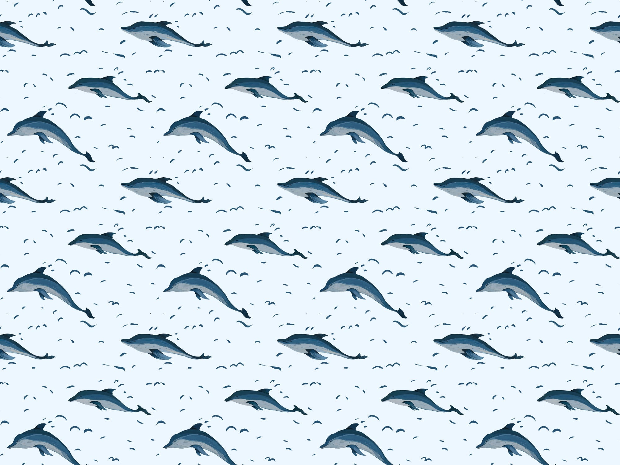 Whimsical dolphins wallpaper for kids’ rooms or nautical themes.