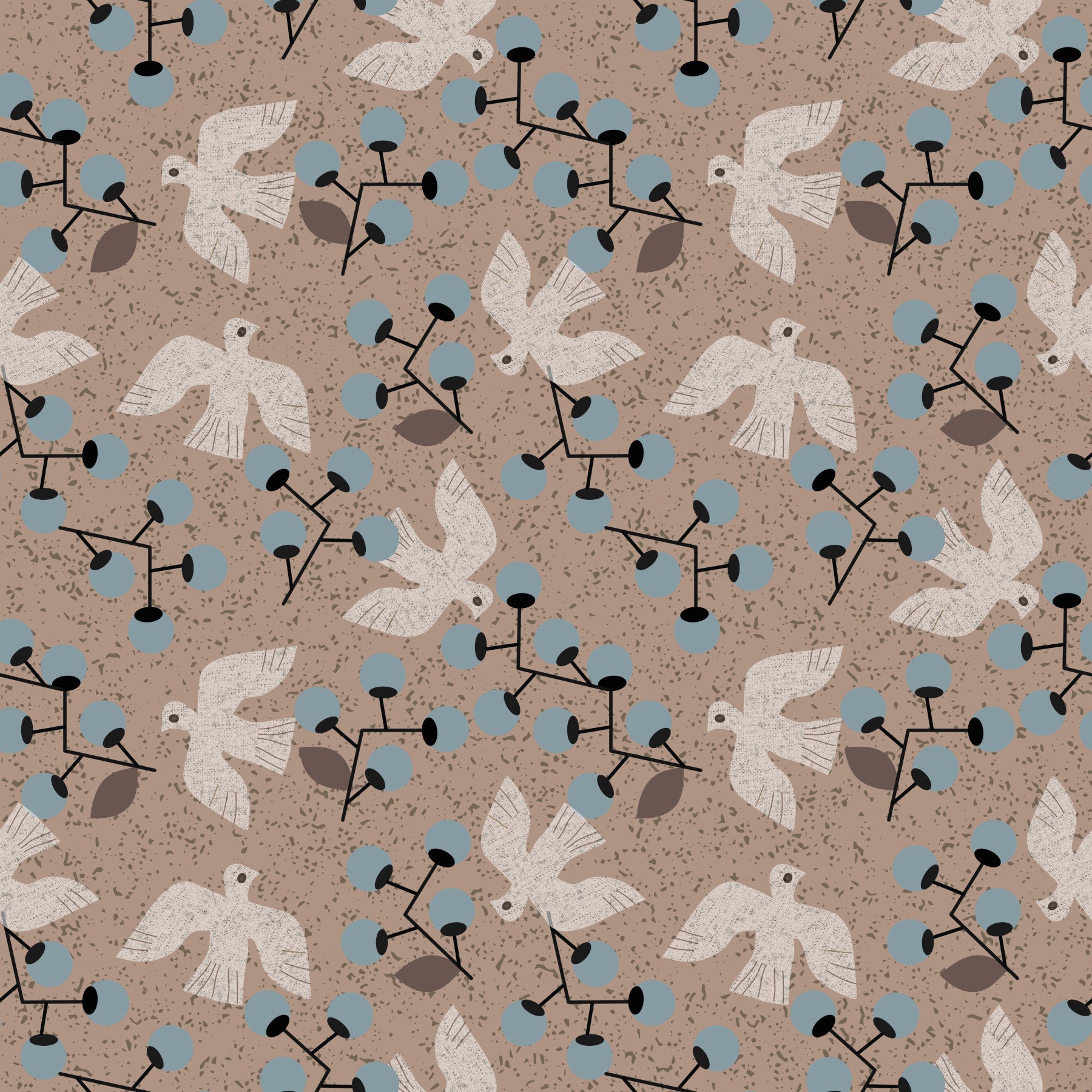 Seamless Dove & Berry Delight background, a warm avian wall covering.