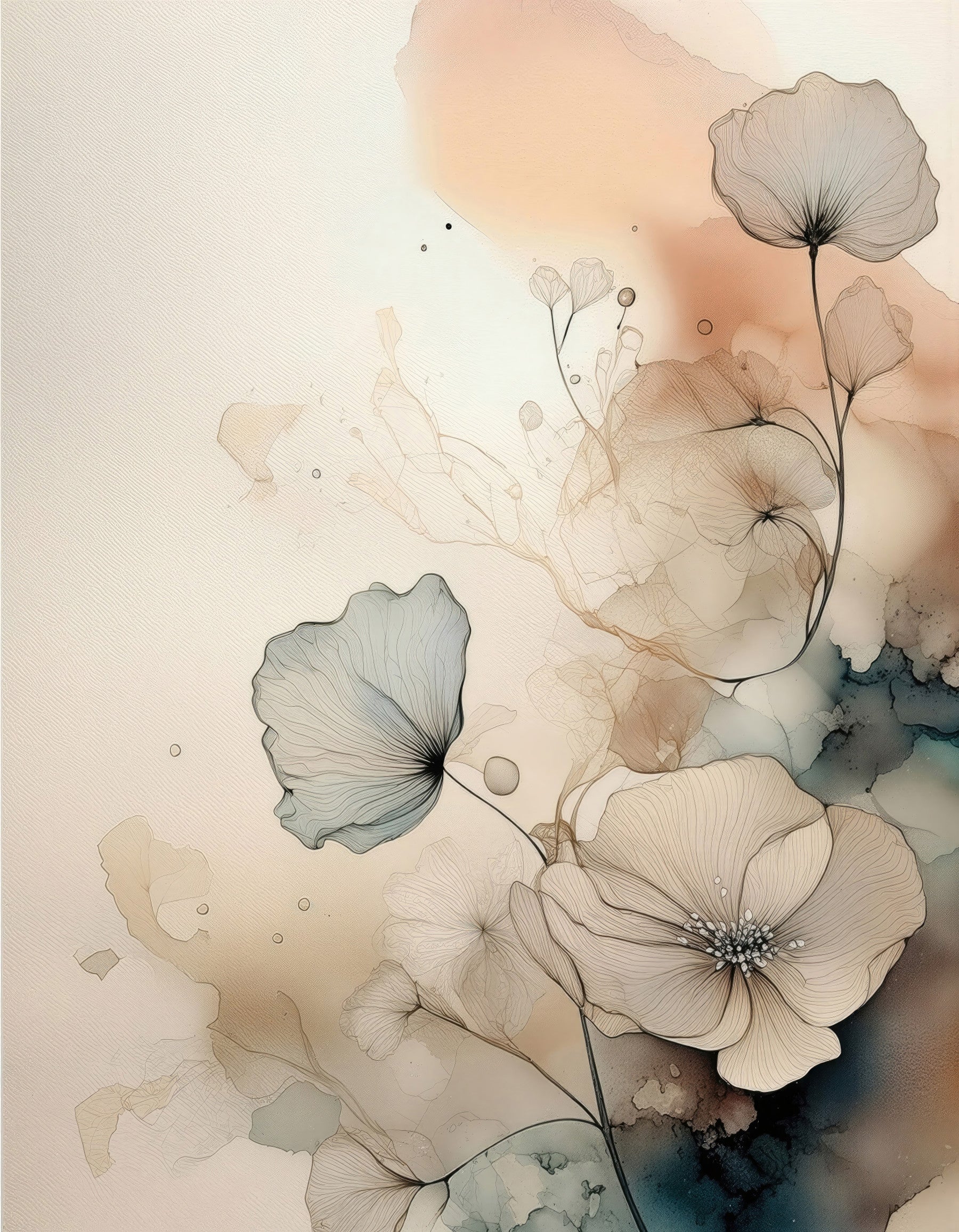 Dark, shadowed flower blooms in the Dusky Ink Petals design.