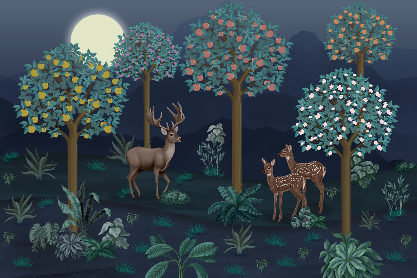 Transform your space with the Dusty Blue Wildlife Wallpaper, featuring a serene forest scene with majestic deer, woodland creatures, and lush botanical details. The soft dusty blue background adds a calming touch, making it an ideal choice for nurseries, bedrooms, or nature-themed interiors. This woodland wallpaper blends rustic charm with an elegant aesthetic, perfect for creating a cozy atmosphere. Crafted from high-quality, durable materials, this wildlife wallpaper ensures easy installation and a flawless finish. Whether designing a nursery or a relaxing retreat, this forest wallpaper brings the beauty of nature indoors, offering a timeless and enchanting look.