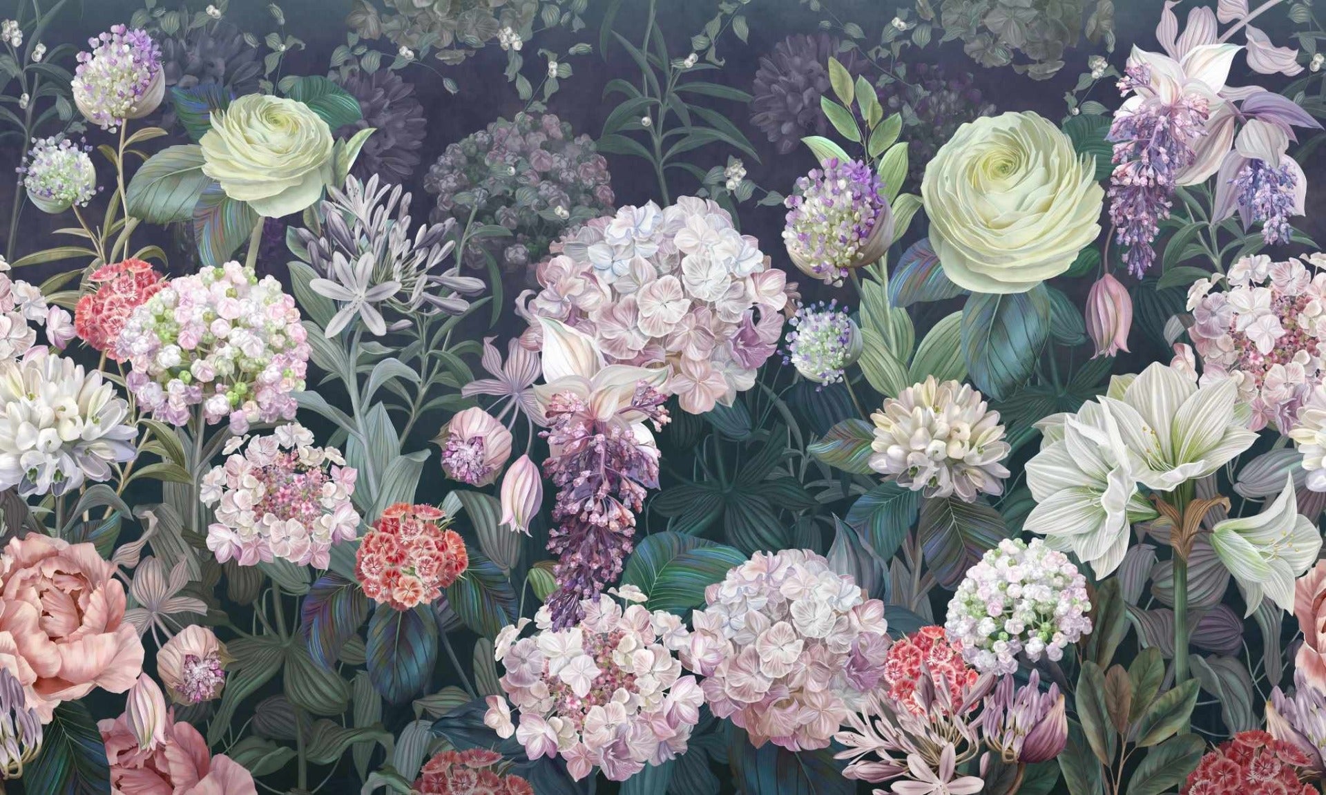 Sophisticated floral wall mural with Dutch rose details