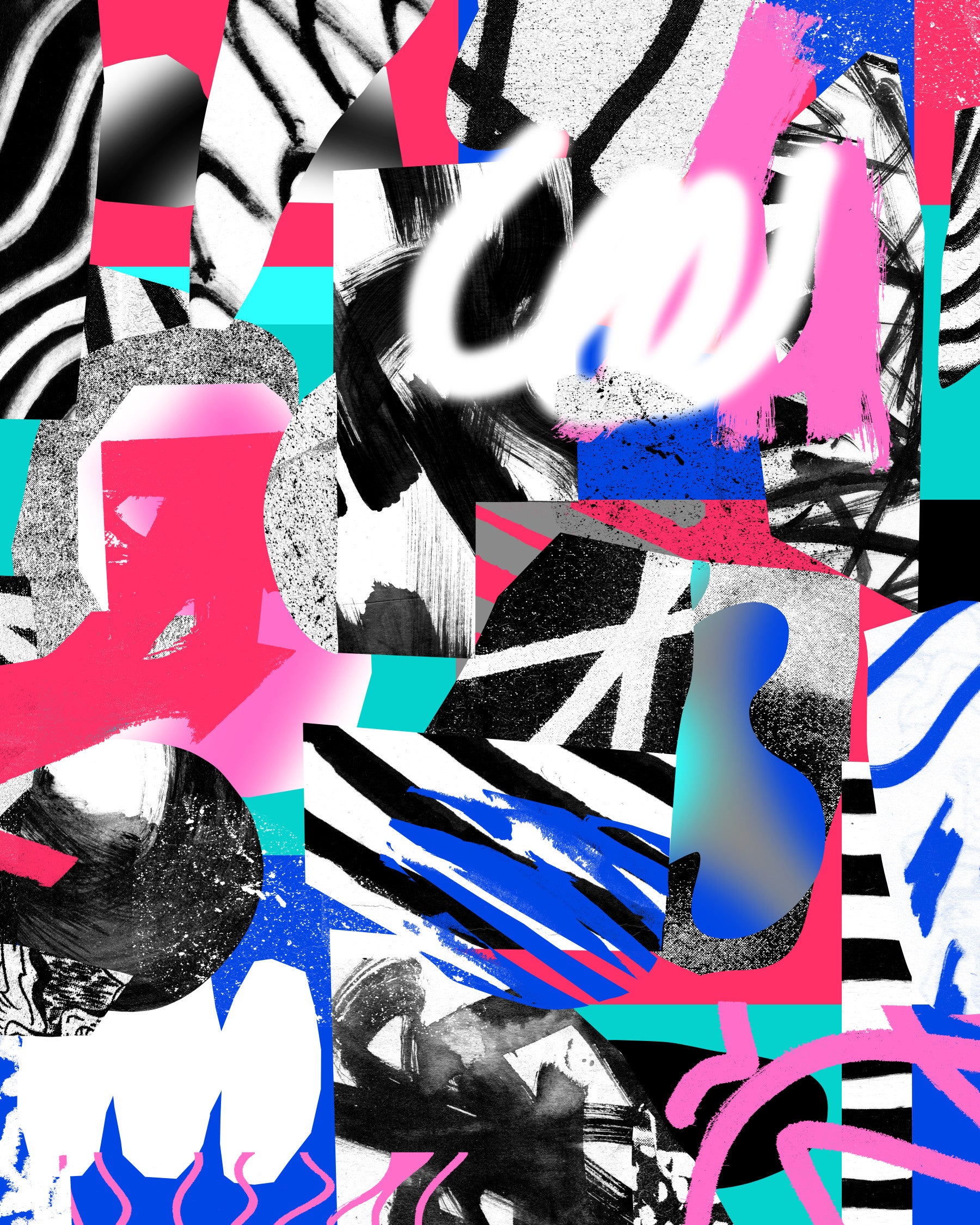 Unleash a burst of creative energy onto your screen with 'Dynamic Collage'! This wallpaper is a vibrant explosion of abstract elements, merging textures, bold colors, and expressive brushstrokes into a captivating visual experience. Zebra stripes collide with swathes of hot pink, electric blue, and pops of refreshing turquoise, creating a visually stimulating composition. The interplay of stark black and white against these lively hues adds depth and contrast, ensuring that every glance reveals a new detail. This is more than just a wallpaper; it's a statement piece that embodies artistic flair and contemporary design. Perfect for those who seek inspiration and a touch of rebellious creativity in their digital lives, 'Dynamic Collage' injects an exciting and ever-evolving visual narrative into your everyday experience.