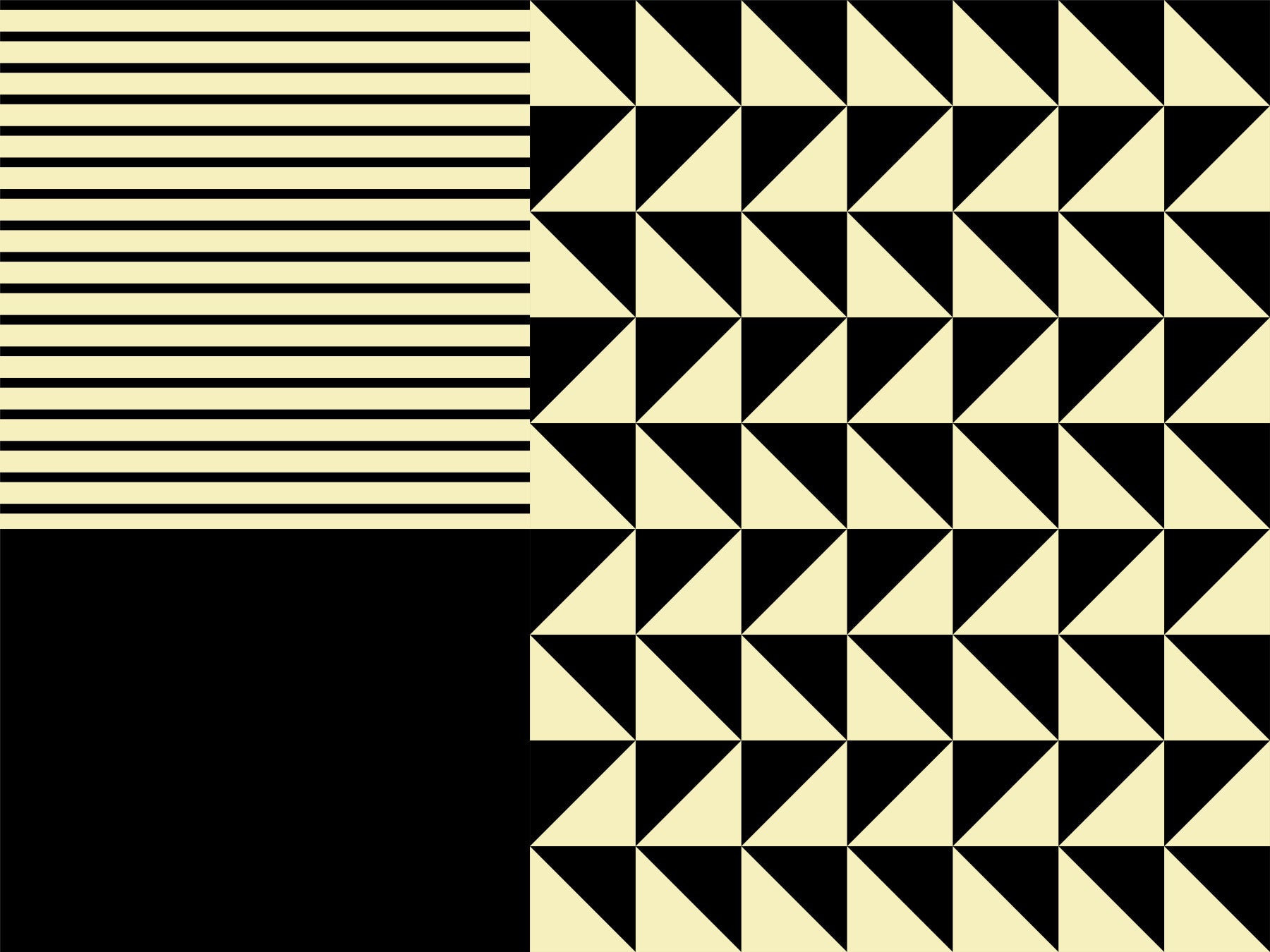 High-contrast pattern of the Dynamic Duo mural with stripes and triangles.
