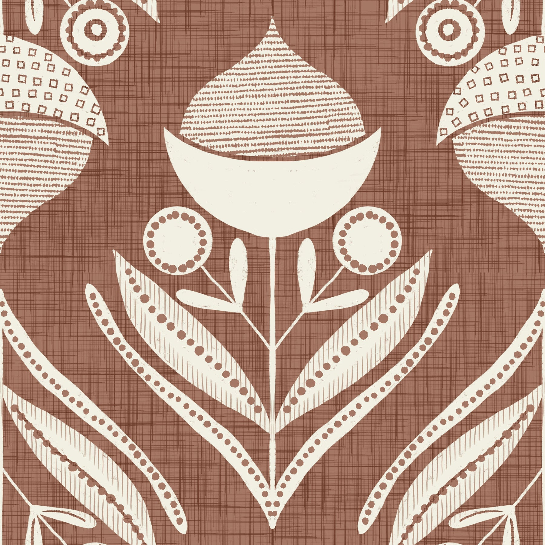 Earthy Floral Echo Wallpaper with a repetitive bloom motif.