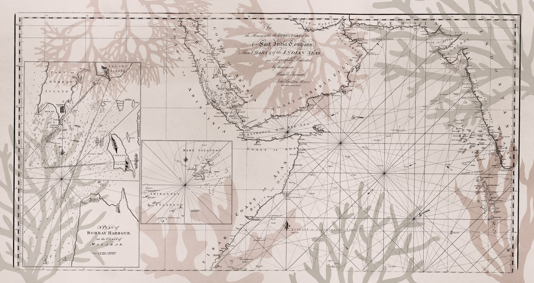 Transform your space with this antique-style chart featuring a design of the Indian seas and coastline. Soft washes of coral intertwine with the map's detailed lines, creating a soothing visual texture. This wallpaper for walls offers a blend of historical intrigue and modern design sensibilities. It's ideally suited for a home office or a dining room, infusing sophistication while harmonizing with your interior decor. Install and create a unique accent wall reminiscent of maritime history and exotic voyages.