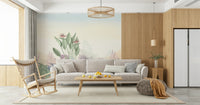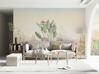 Infuse your home with the lush tranquility of a tropical paradise using this artistic wallpaper for walls. Soft watercolor textures create a verdant landscape, evoking a sense of calm and rejuvenation. A balanced mix of greens, pinks, and light blues brings an airy, sophisticated quality to the design. This botanical scene enhances living rooms, bedrooms, and hallways, creating a soothing ambiance. The design works beautifully with natural light, bringing depth and life to the walls. Embrace the serenity of nature within your interiors and discover a stylish, peaceful sanctuary.