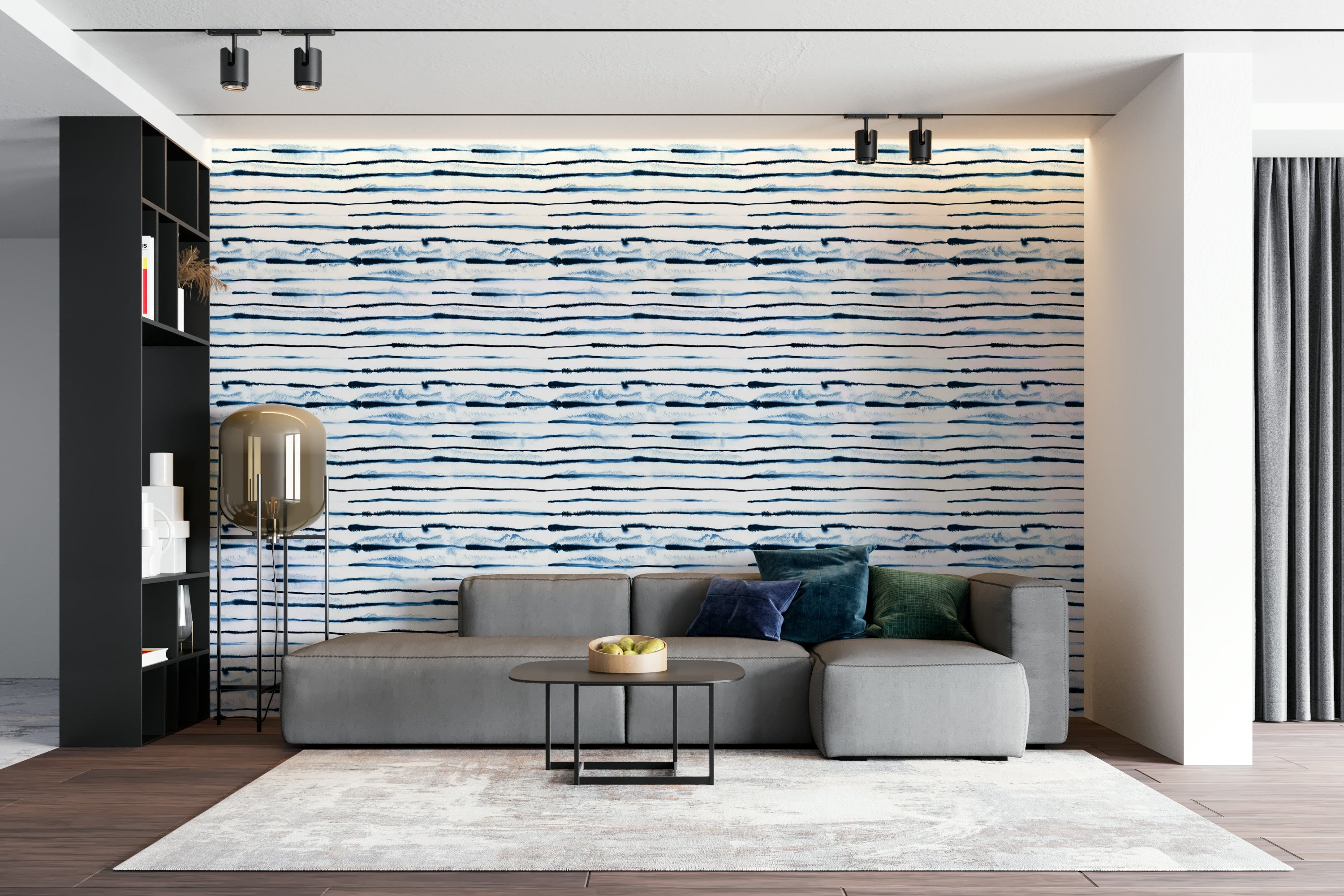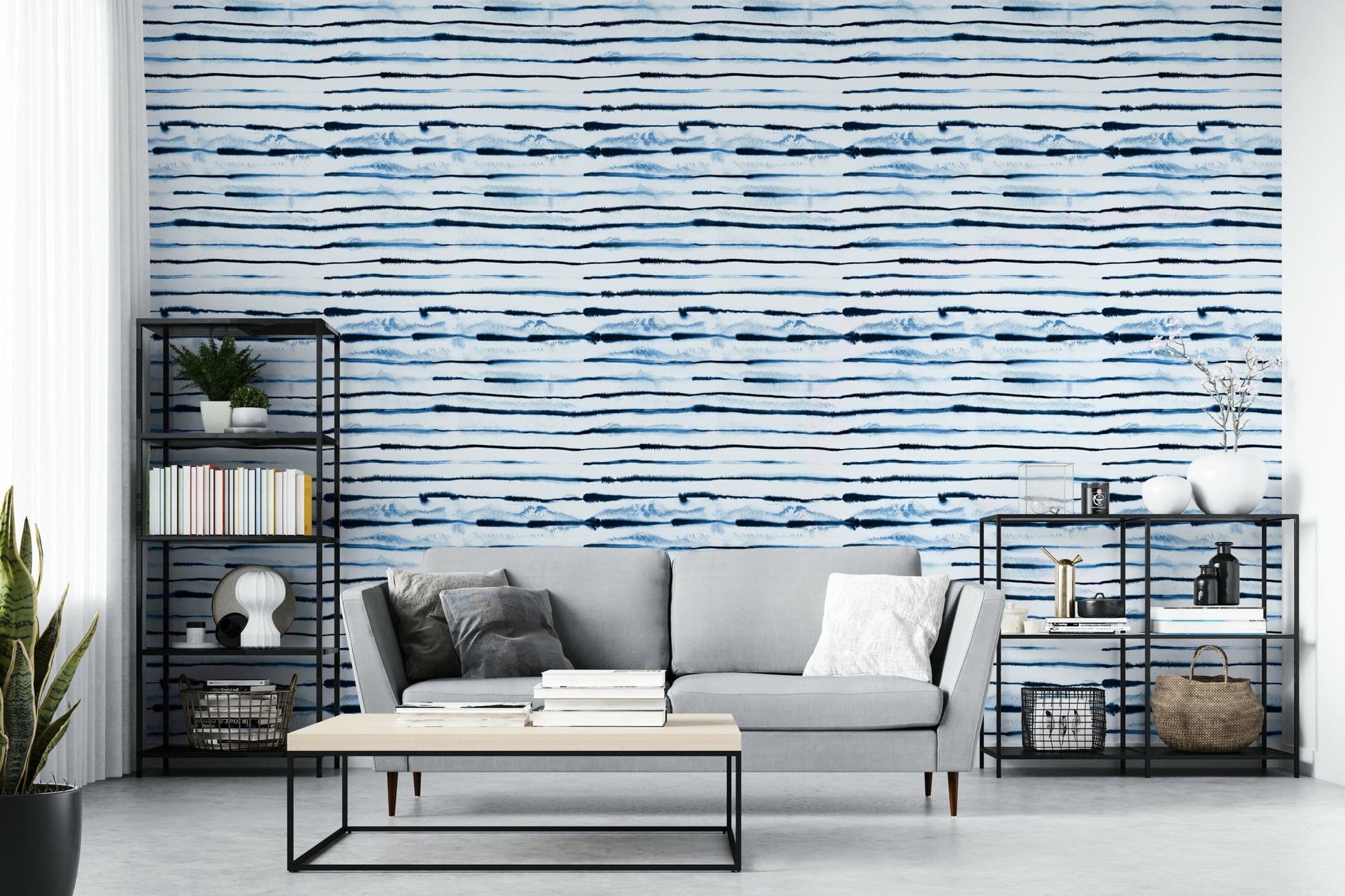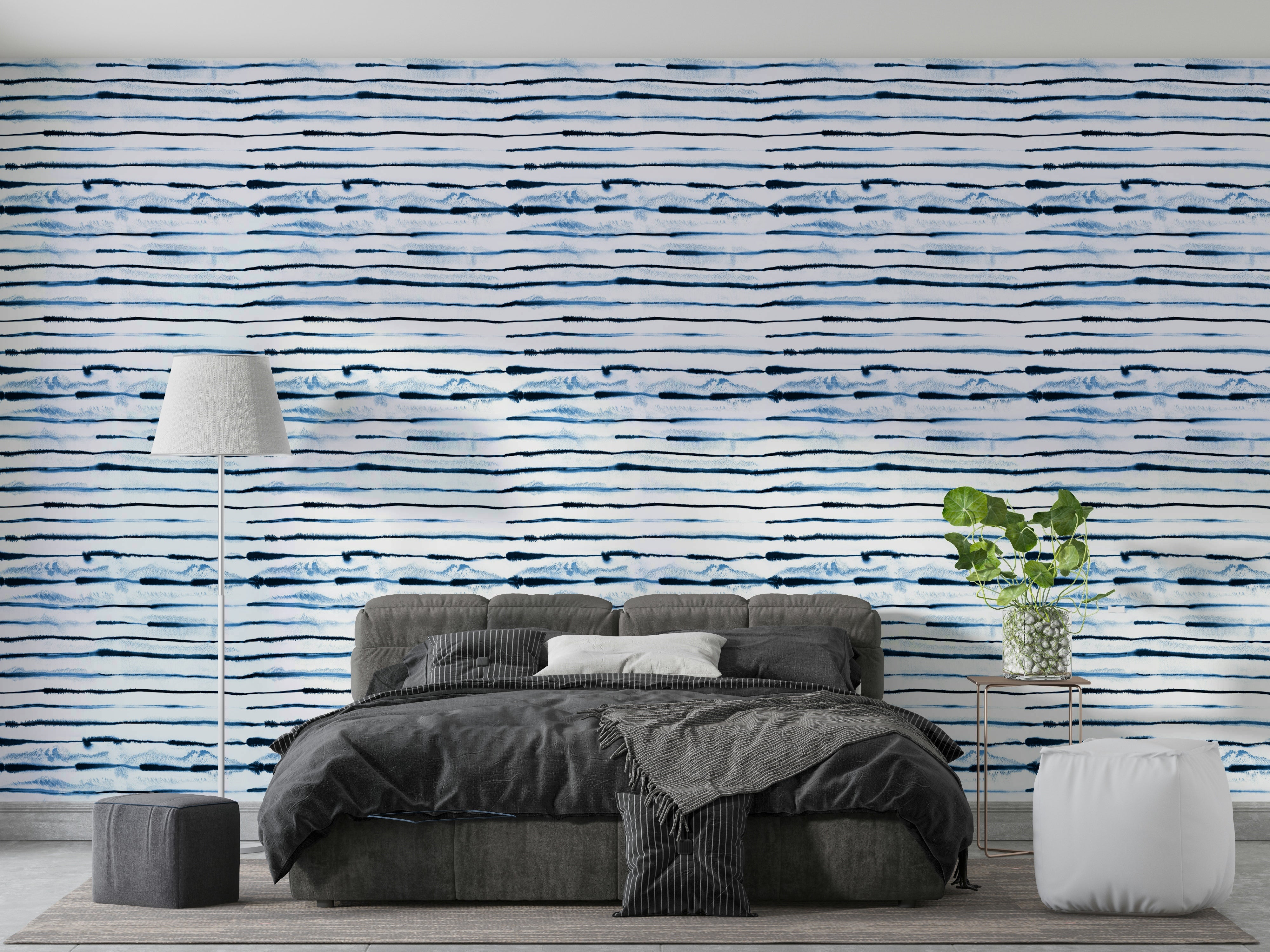 Electric Ink Stripes Scandinavian Indigo Wallpaper⁠