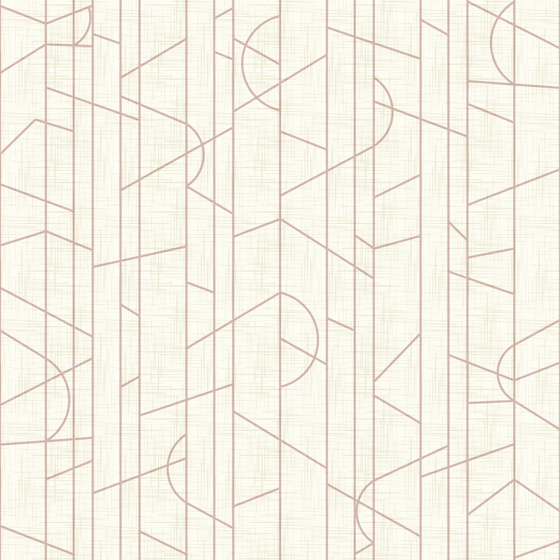 This wallpaper showcases a sophisticated interplay of elegant lines and a bright rosy hue. Delicate blush-toned geometric patterns, including intersecting lines, triangles, and partial circles, are artfully arranged against a textured off-white background reminiscent of linen. The design creates a calming yet modern aesthetic, perfect for adding a touch of understated elegance to any space. The subtle rosy pink accents provide a gentle warmth, enhancing the overall refined and harmonious feel. This wallpaper is ideal for those seeking a minimalist yet visually engaging design with a touch of feminine charm.
