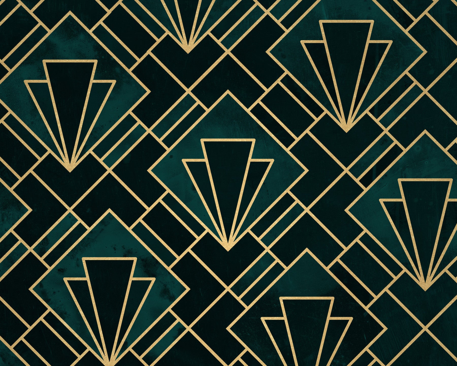 Stunning Emerald Art Deco Mural for Modern Interiors