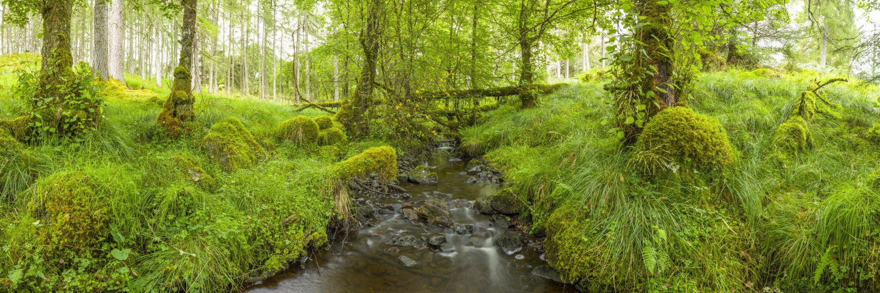 Water stream through forest. Evoke the beauty of a serene forest with this dynamic wallpaper. The scene features a stream flowing through a lush forest, where emerald green moss blankets the trees and rocks. The long exposure on the water brings fluidity. Use this wallpaper for walls to give any room a vibrant and organic vibe. This design complements interiors with a natural, earthy palette and is ideal for creating a restful ambiance in bedrooms or a refreshing feel in living areas.