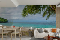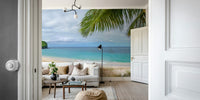 Tranquil beach in St Vincent, Caribbean islands. Elevate your home with this scenic beach wallpaper. A vibrant display of emerald waters and lush tropical greenery creates a vibrant, tranquil space. This design features a clear view of the shoreline, perfect for bringing a natural retreat to your living space. The wallpaper for walls provides a refreshing look for any room. It is ideal for living rooms, bedrooms or bathrooms. The color palette works well with minimalist interiors or any other decoration styles.