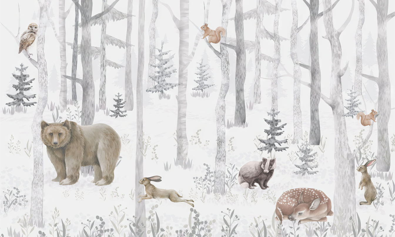 Nursery wallpaper with forest animals