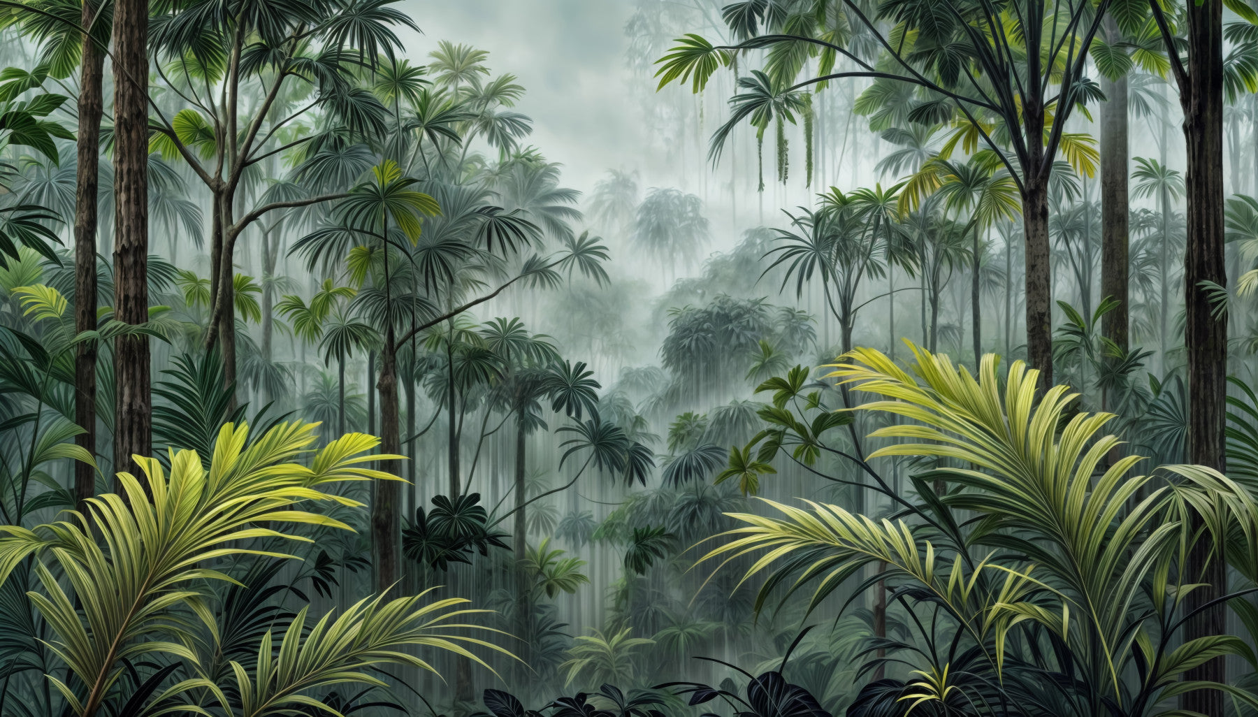 Escape to a hidden world of lush greenery with this enchanting jungle wallpaper. The misty atmosphere adds an air of mystery, while the vibrant tropical plants create a vibrant, exotic feel. This piece is more than just a wallpaper; it's an invitation to a journey into the heart of the rainforest. The detailed brushstrokes and realistic depiction of the flora evoke a sense of wonder and adventure. Perfect for adding a touch of magic and tranquility to any room in your home, from bedrooms to living spaces.