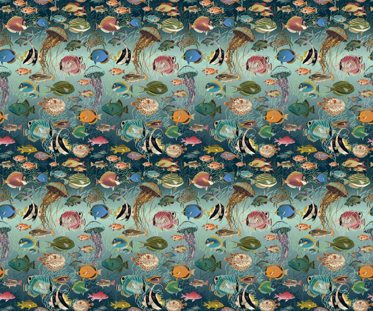 Dynamic Marine Mosaic Wallpaper for Interiors