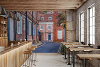 English Town Lane Wall Mural in a minimalist living room setting wallpaper.
