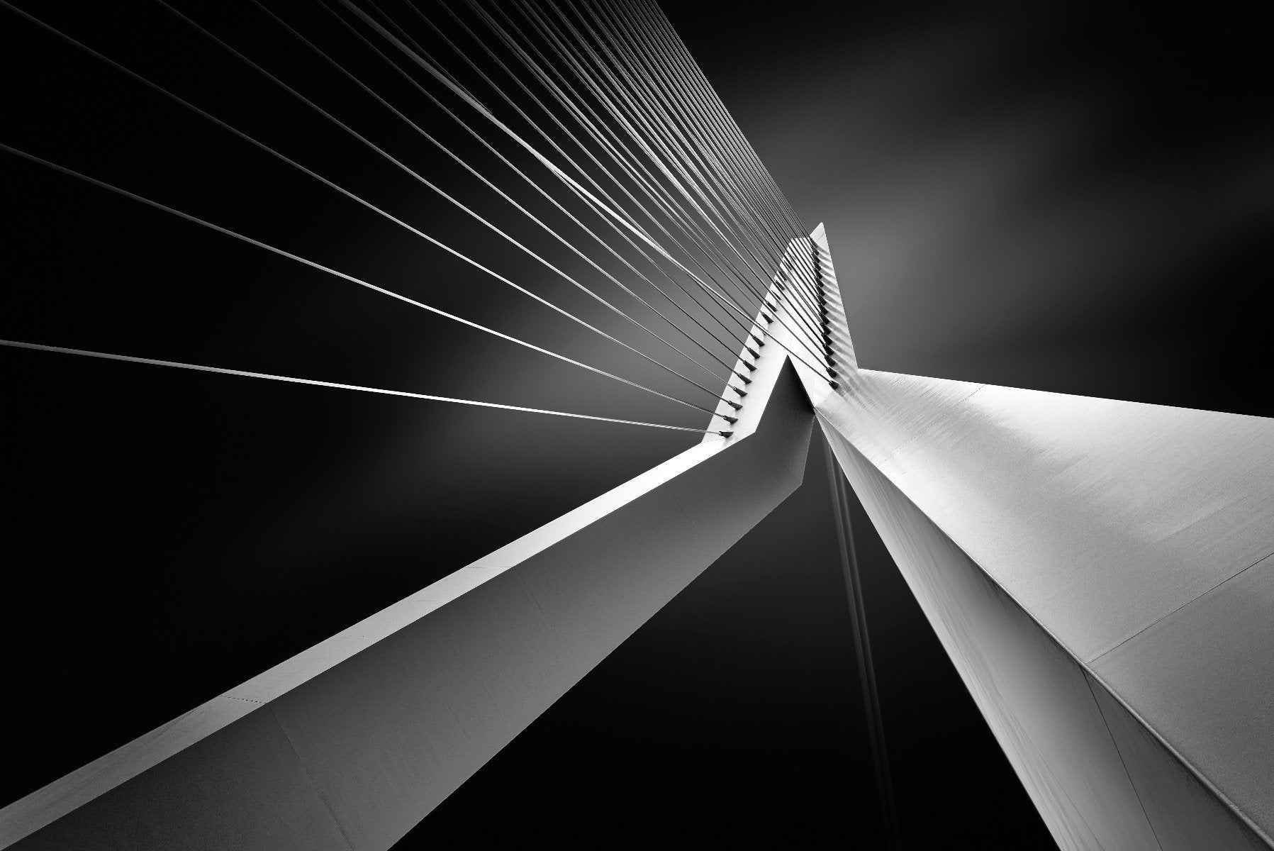 Minimalist Erasmus Bridge wallpaper in sleek monochrome style