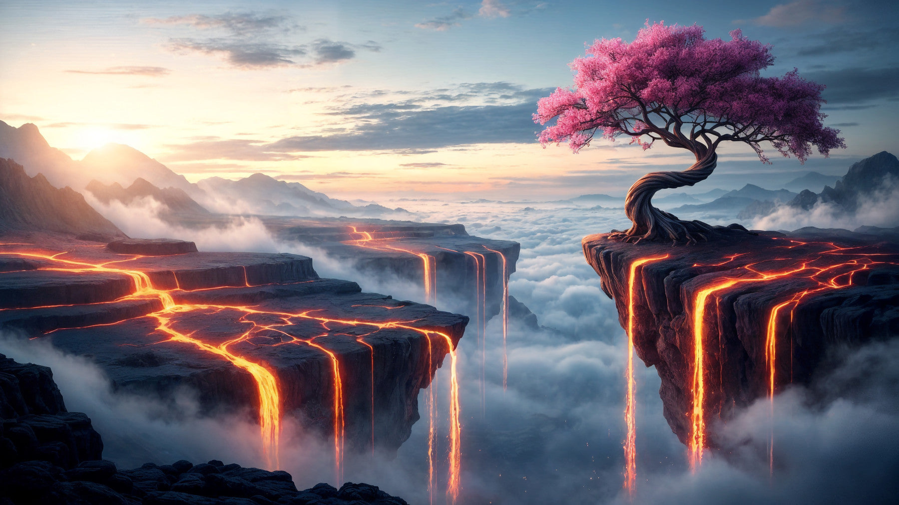 Ethereal Bloomscape wallpaper backdrop behind a grey velvet sofa.
