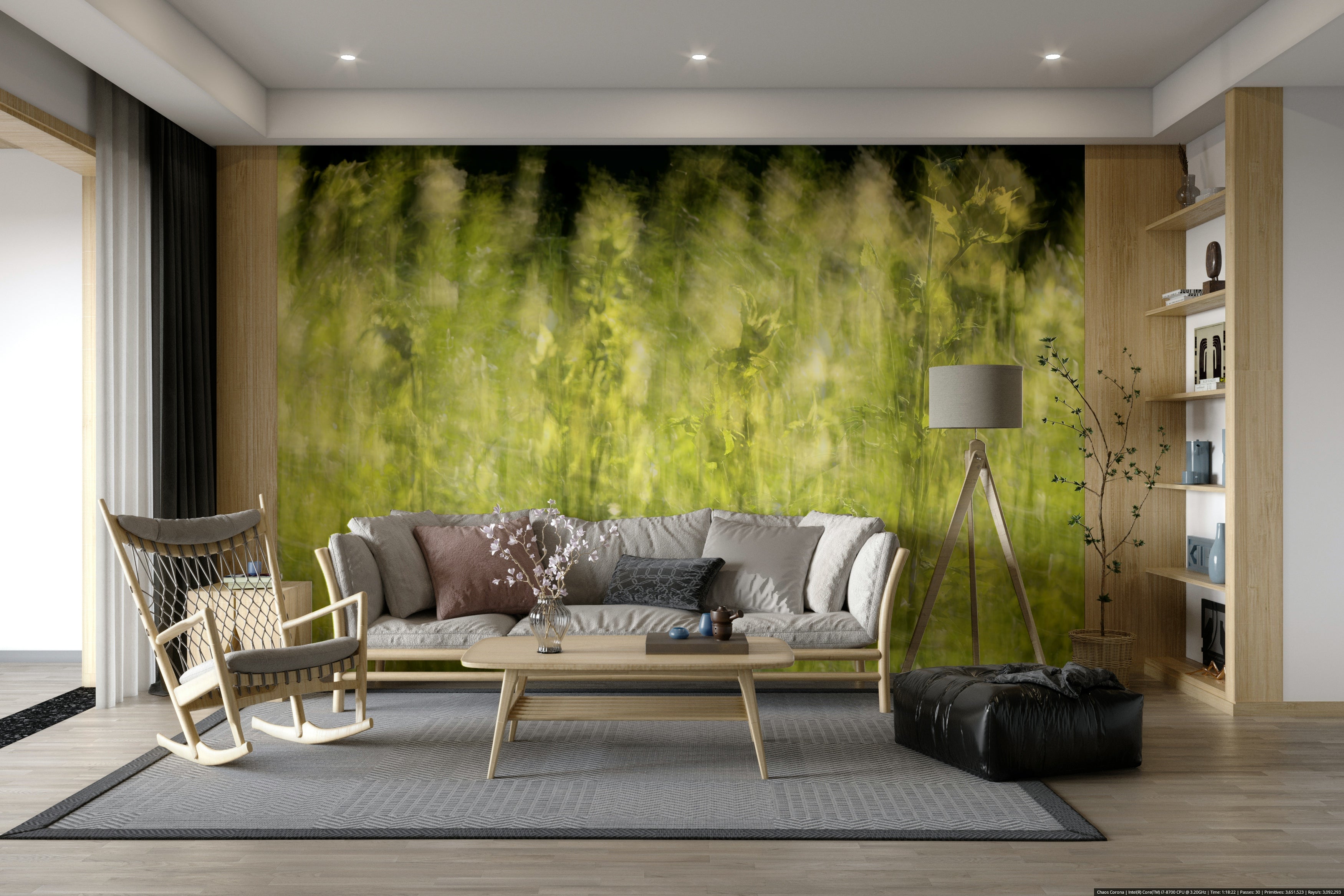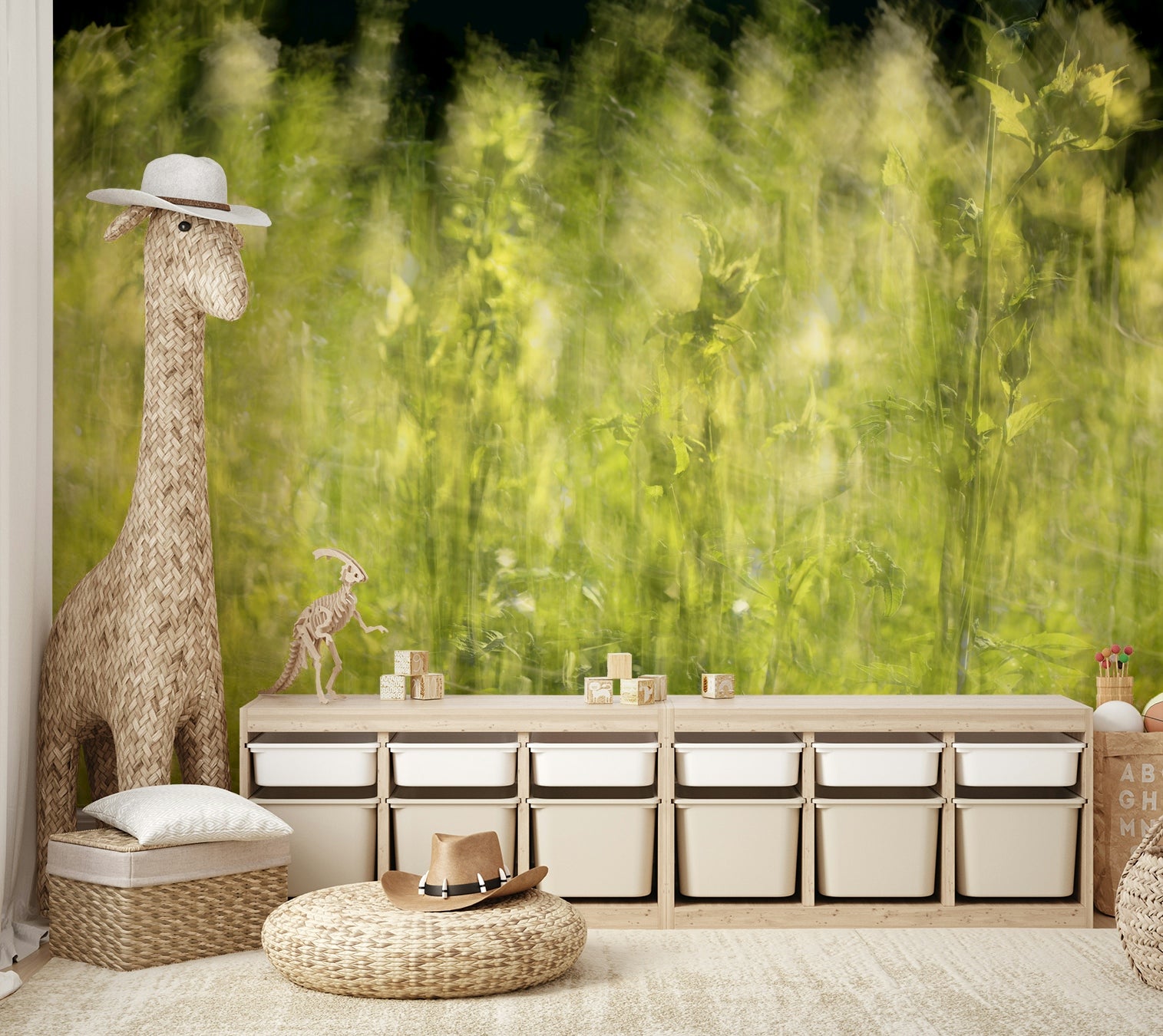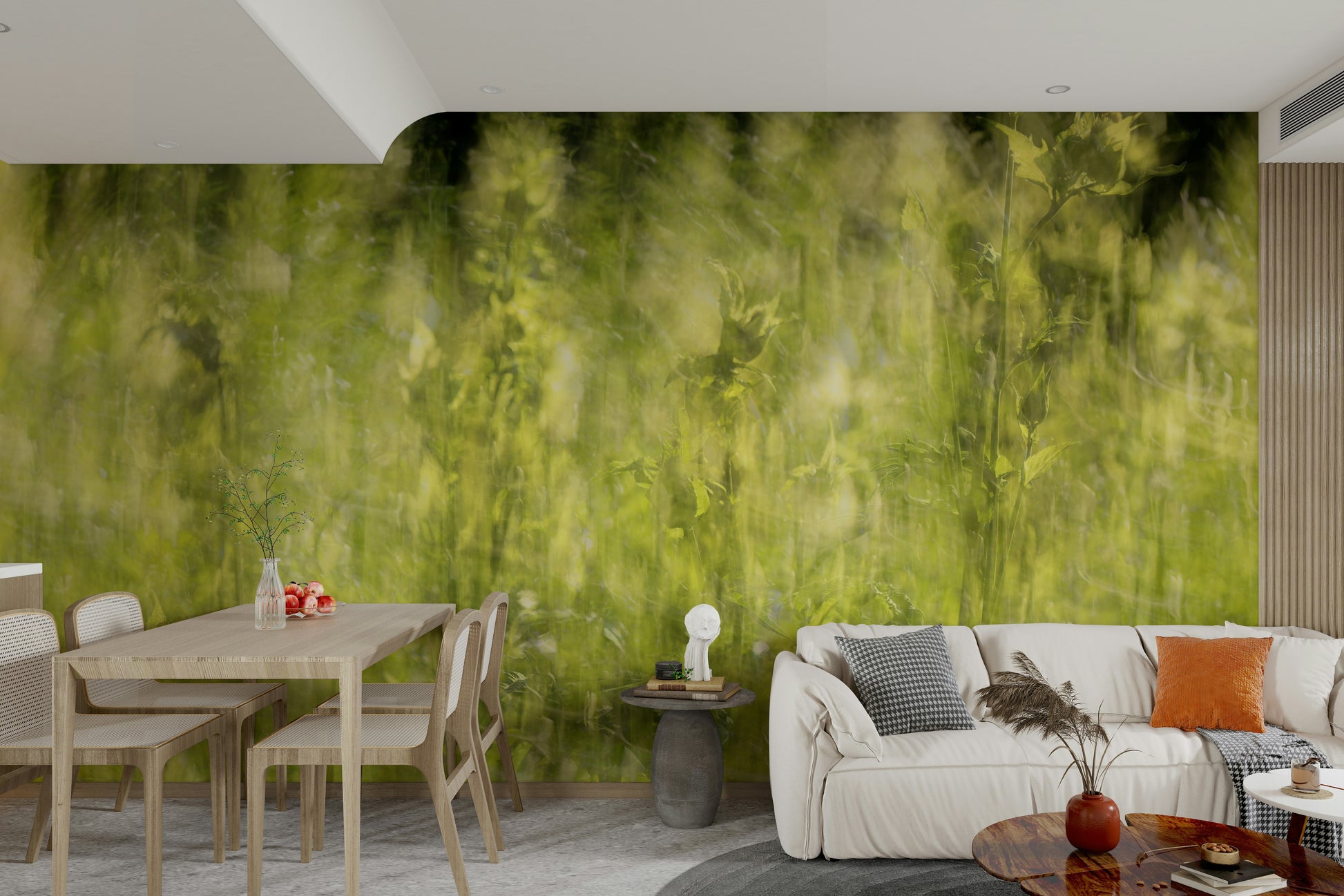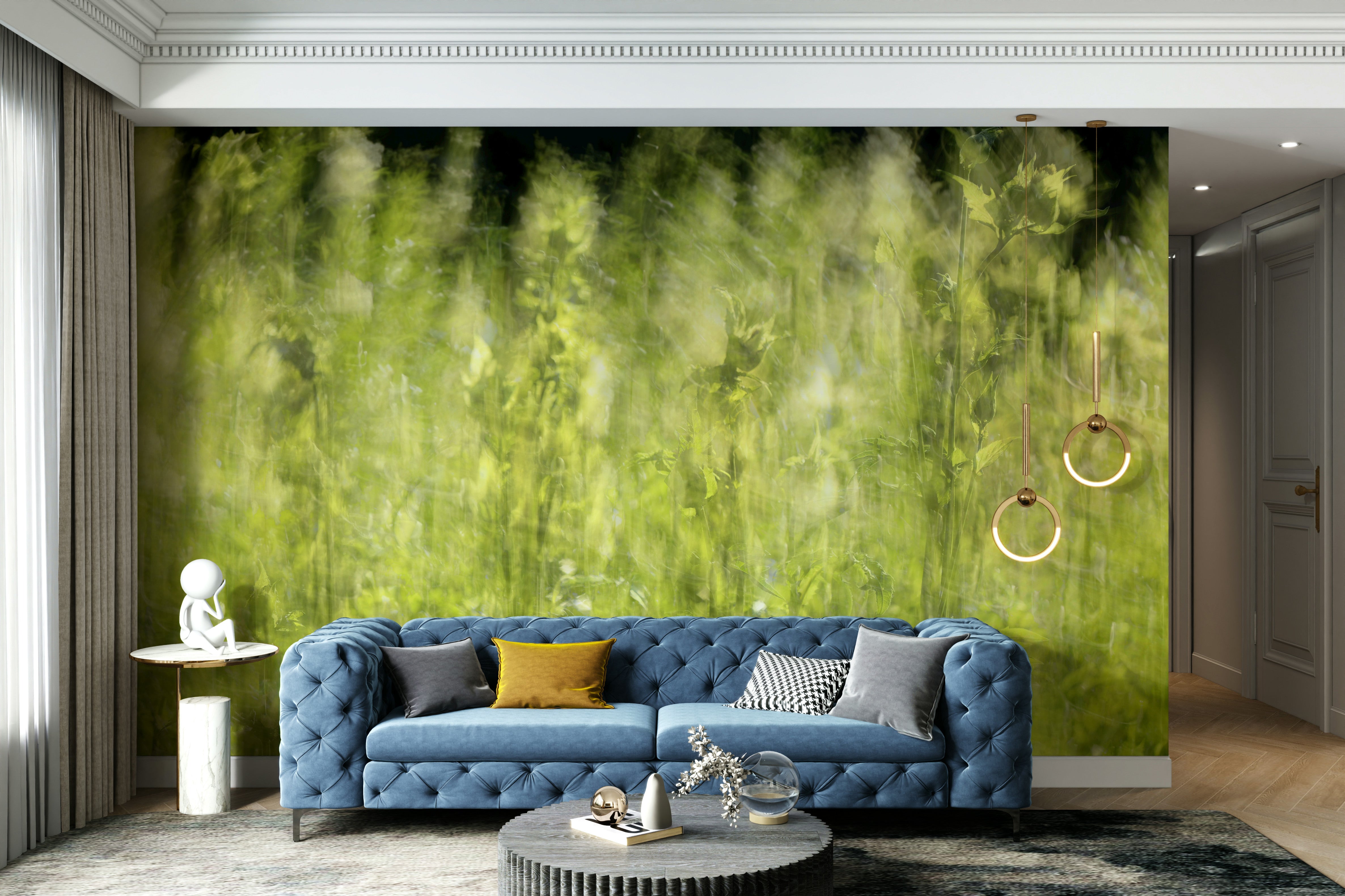 Ethereal Green Field Photography | Soft Blurred Nature Art | Serene Landscape Decor Wall Mural