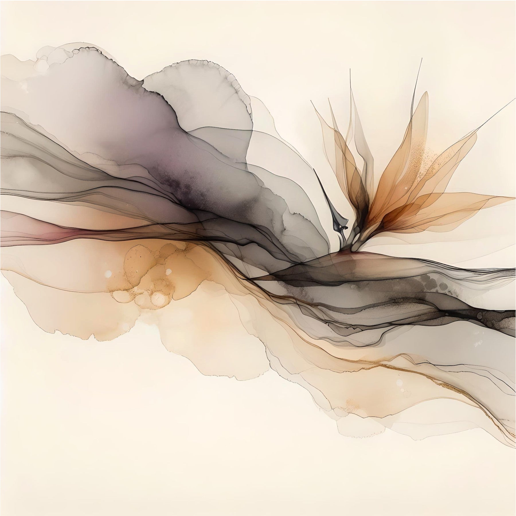 Find your inner peace with this captivating abstract wallpaper. The artwork features a harmonious blend of soft beige, gentle grey, and warm brown tones, creating a visually stunning and calming effect. Fluid, organic lines dance across the canvas, adding a sense of movement and depth. A hint of golden color adds a touch of luxury and warmth. Ideal for bedrooms, living rooms, and meditation spaces, this wallpaper promotes serenity and sophisticated style. Its minimalist design enhances the feeling of calm and creates a welcoming atmosphere in any room. The subtle color palette and graceful lines are calming and inviting.