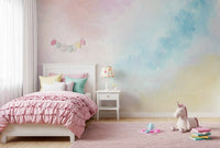 Transform your living space with this exquisite abstract wallpaper for walls, featuring delicate, painterly strokes. Soft pinks, serene blues, and sunny yellows blend seamlessly across a textured background, reminiscent of a canvas painting. This design offers a tranquil backdrop, enhancing a calm and inviting atmosphere. It brings an artistic touch to bedrooms, nurseries, or peaceful living areas. The gentle color transitions softly illuminate any room, creating a feeling of spaciousness and understated elegance. This captivating artwork adds warmth and a refreshing aesthetic, making any wall a serene focal point.