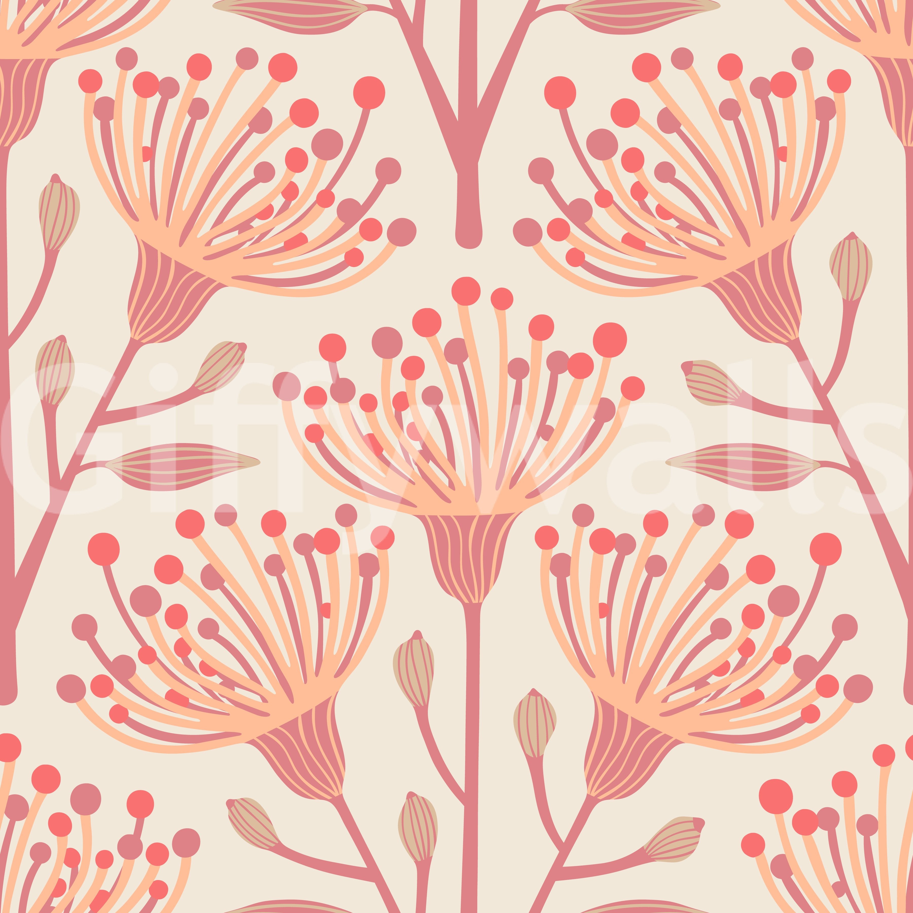 Indulge in the serene charm of 'Eucalyptus' in Peach Fuzz Orange on Cream, a wallpaper that effortlessly blends botanical beauty with a contemporary color palette. This design showcases stylized eucalyptus-inspired florals in shades of peach fuzz orange and gentle rose on cream, creating a calming and inviting atmosphere. The artfully arranged botanical elements add a touch of nature to your space, while the soft, warm colors provide a comforting and sophisticated backdrop. Perfect for bedrooms, living rooms, or any space where you seek a touch of understated elegance, this wallpaper brings a breath of fresh air and a sense of tranquil harmony. Elevate your interior with this sophisticated and soothing botanical design, allowing your walls to bloom with a subtle yet captivating charm. This pattern design is also available in Other Colourways too! Original wallpaper pattern design by Jackie Tahara of UnBlink Studio.