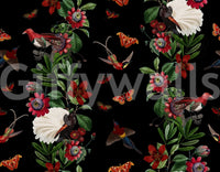 Experience the allure of the tropics with 'Exotic Nights'. This wallpaper design transports you to a moonlit jungle, where crimson passionflowers and deep red hibiscus blooms unfurl under the cover of darkness. Vibrant hummingbirds and birds-of-paradise add a touch of surreal beauty, while delicate butterflies flit among the blossoms. The rich, dark background enhances the dramatic colors, creating an atmosphere of mystery and enchantment. 'Exotic Nights' is a sophisticated choice for those who appreciate bold, luxurious designs, bringing a touch of the wild to any room and creating a dramatic feature wall.