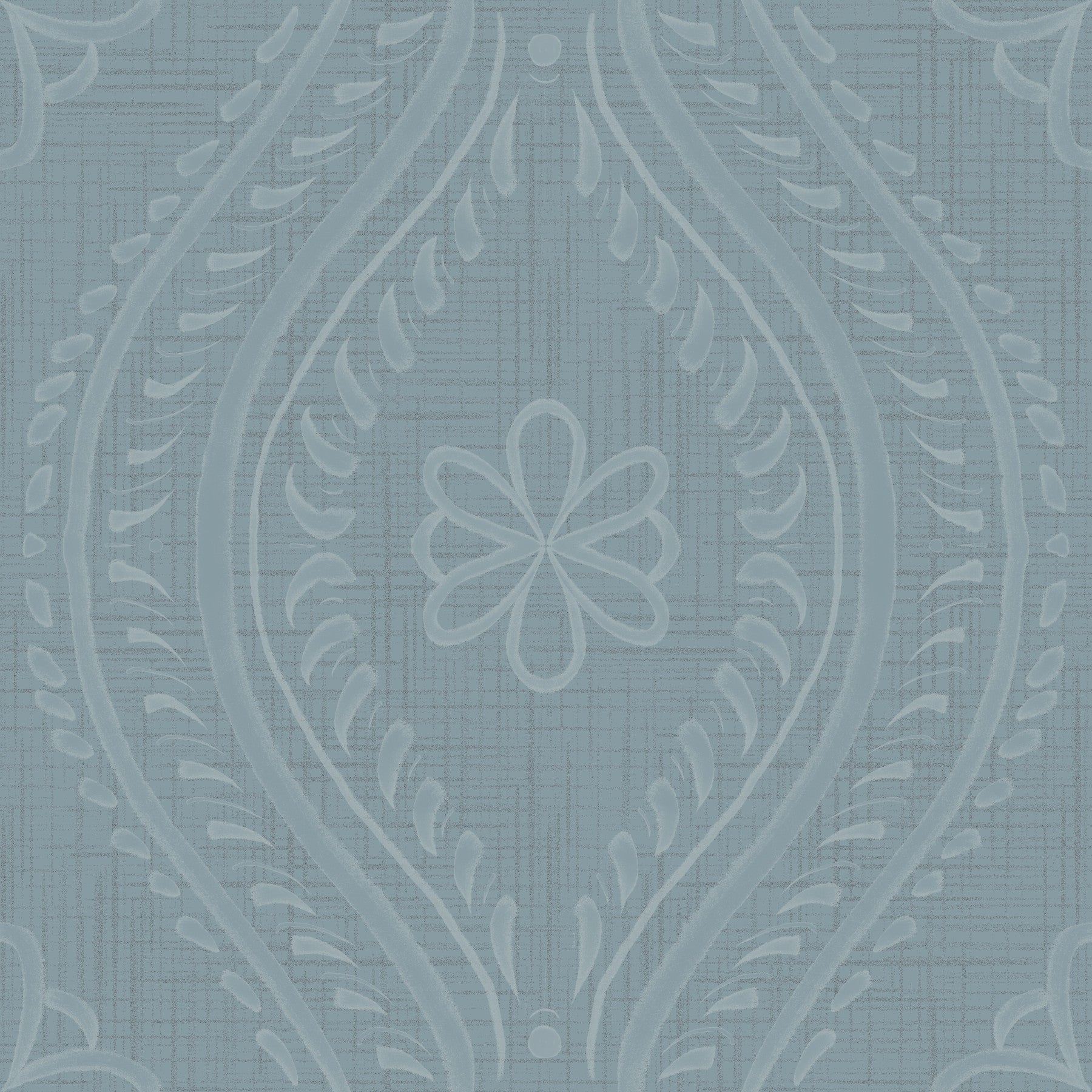 Indulge in the serene elegance of 'Faded Ogee Damask - Arona,' a wallpaper design that effortlessly blends vintage charm with modern minimalism. Subtle, muted blue tones create a calming atmosphere, while the intricate ogee pattern, reminiscent of classic damask, adds a touch of sophisticated texture. The slightly faded effect lends a sense of aged grace, making it perfect for adding a touch of understated luxury to any space. The central floral motif adds a delicate focal point to the overall design, completing this timeless and versatile wallpaper choice.