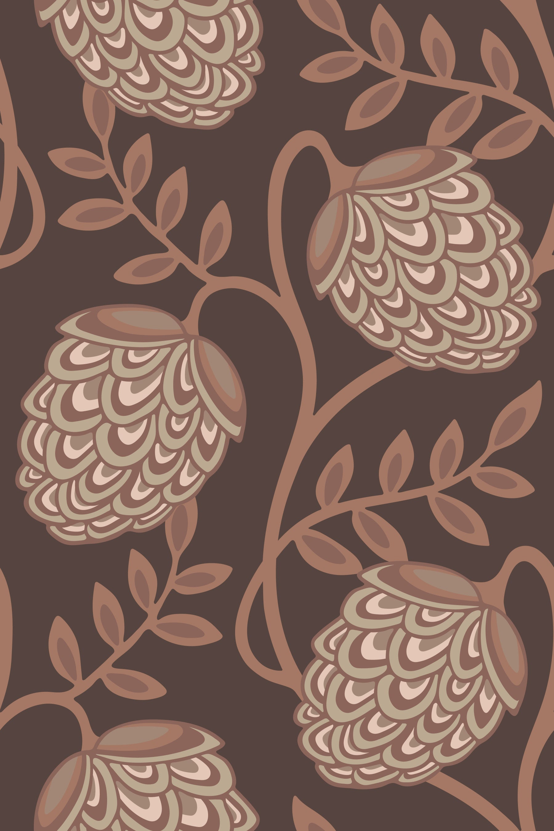 Immerse yourself in the enchanting allure of Fantasia a wallpaper design that seamlessly blends botanical wonder with modern Art Nouveau flair. This organic design features stylized flower vines and leaves crafted with a gentle, curving aesthetic that is a modern twist on classic Art Nouveau style. The sophisticated palette of warm earth tones, including mocha mousse brown and shades of beige beige creates a warm and elegant ambiance, perfect for bedrooms, living rooms, or any space desiring a touch of refined and earthy elegance. This pattern design is also available in Other Colourways too! Original wallpaper pattern design by Jackie Tahara of UnBlink Studio.