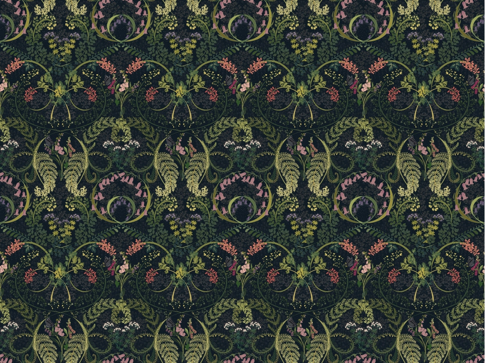 Animal and botanical patterns define Fauna Silhouette wallpaper