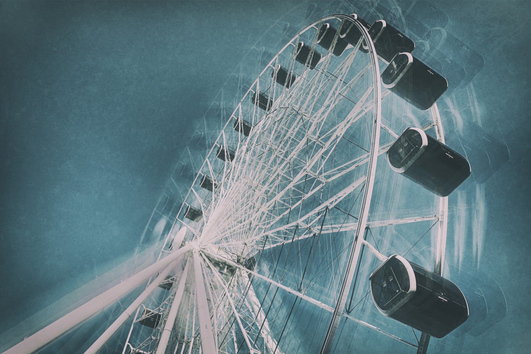 Lose yourself in the serene spectacle of Ferris Wheel Sky Gaze. This wallpaper captures a unique perspective, looking upwards at a majestic Ferris wheel reaching for the heavens. The artwork blends structural steel and airy sky in a harmonious dance, evoking a sense of wonder and tranquility. The muted, vintage-inspired color palette casts a dreamlike quality over the scene, transforming your screen into a portal for contemplation. The intricate lattice of the Ferris wheel's framework contrasts beautifully with the vast expanse of the sky, offering a captivating focal point. Perfect for those seeking a blend of urban architecture and natural beauty, "Ferris Wheel Sky Gaze" is more than just a wallpaper – it's an invitation to pause, breathe, and appreciate the simple elegance of a Ferris wheel against the backdrop of an endless sky.