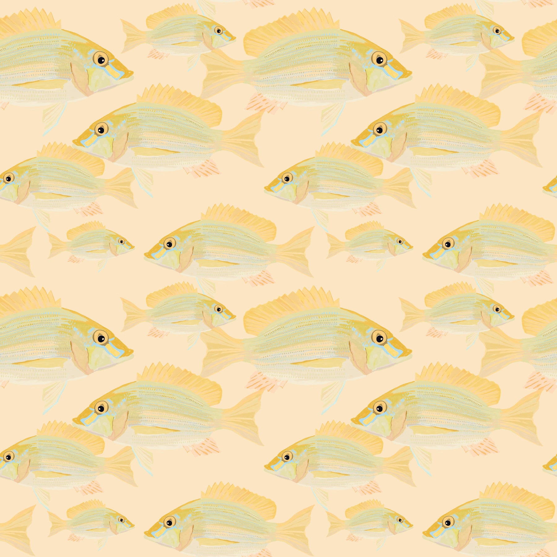 Dive into tranquility with Fishpattern1 a captivating wallpaper featuring a seamless pattern of stylized fish. Pale yellow and soft pastel hues create a serene underwater scene, where elegantly rendered fish glide across a delicate, creamy background. The subtle color variations and textured appearance of the fish impart a sense of calm and gentle movement, ideal for creating a peaceful and aesthetically pleasing atmosphere in any digital space. The repeating pattern ensures a cohesive and visually satisfying design, perfect for phones, tablets, or desktop backgrounds.