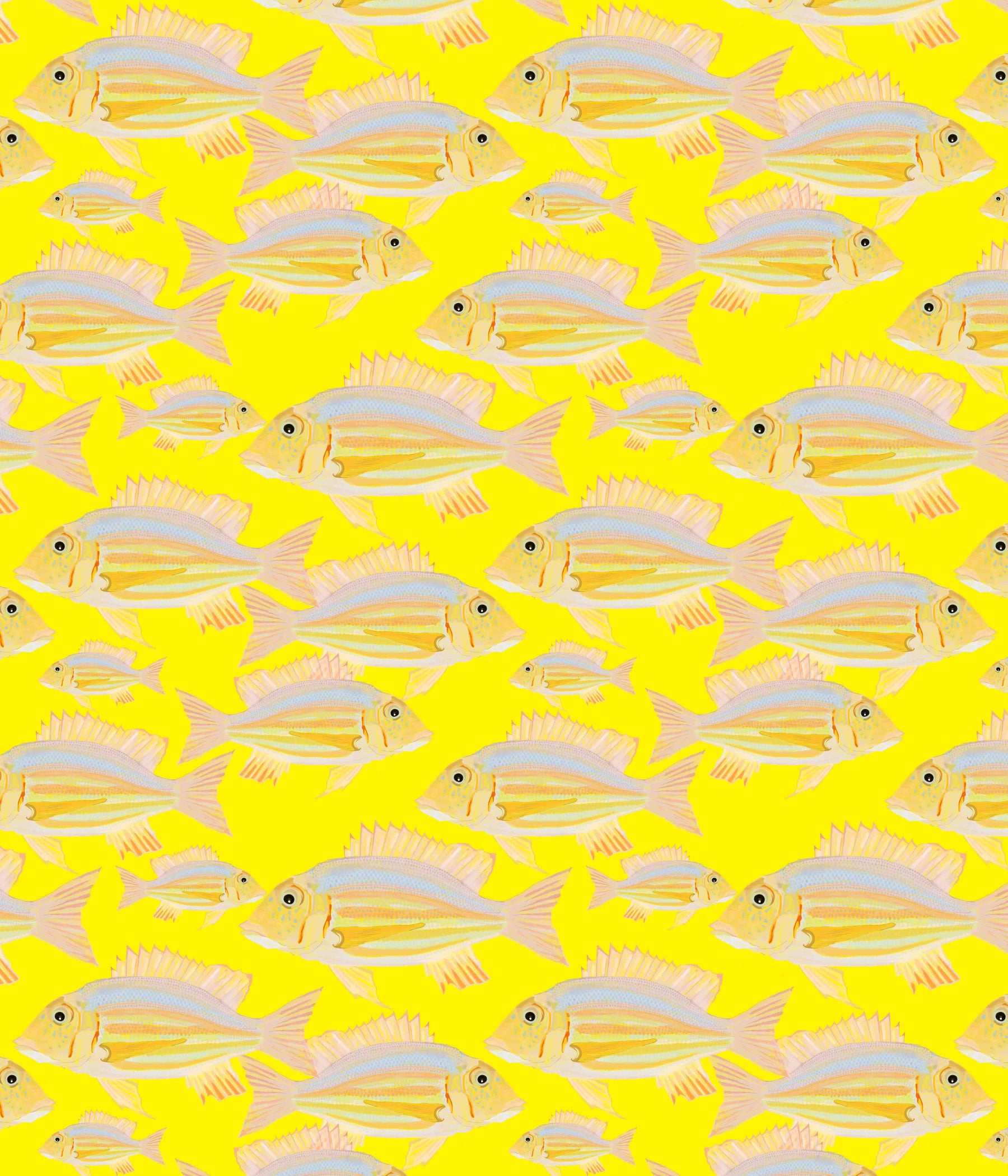 Dive into a vibrant underwater world with this 'Fish' wallpaper, showcasing a lively school of stylized fish swimming against a bold yellow backdrop. The repeated pattern creates a visually striking and dynamic composition. The fish, rendered in shades of yellow, white, and blue, exude a playful and cheerful mood. This wallpaper brings a touch of aquatic charm to any space. Perfect for adding a splash of color and a sense of marine life to your device, this playful design is sure to catch the eye and brighten up your screen.