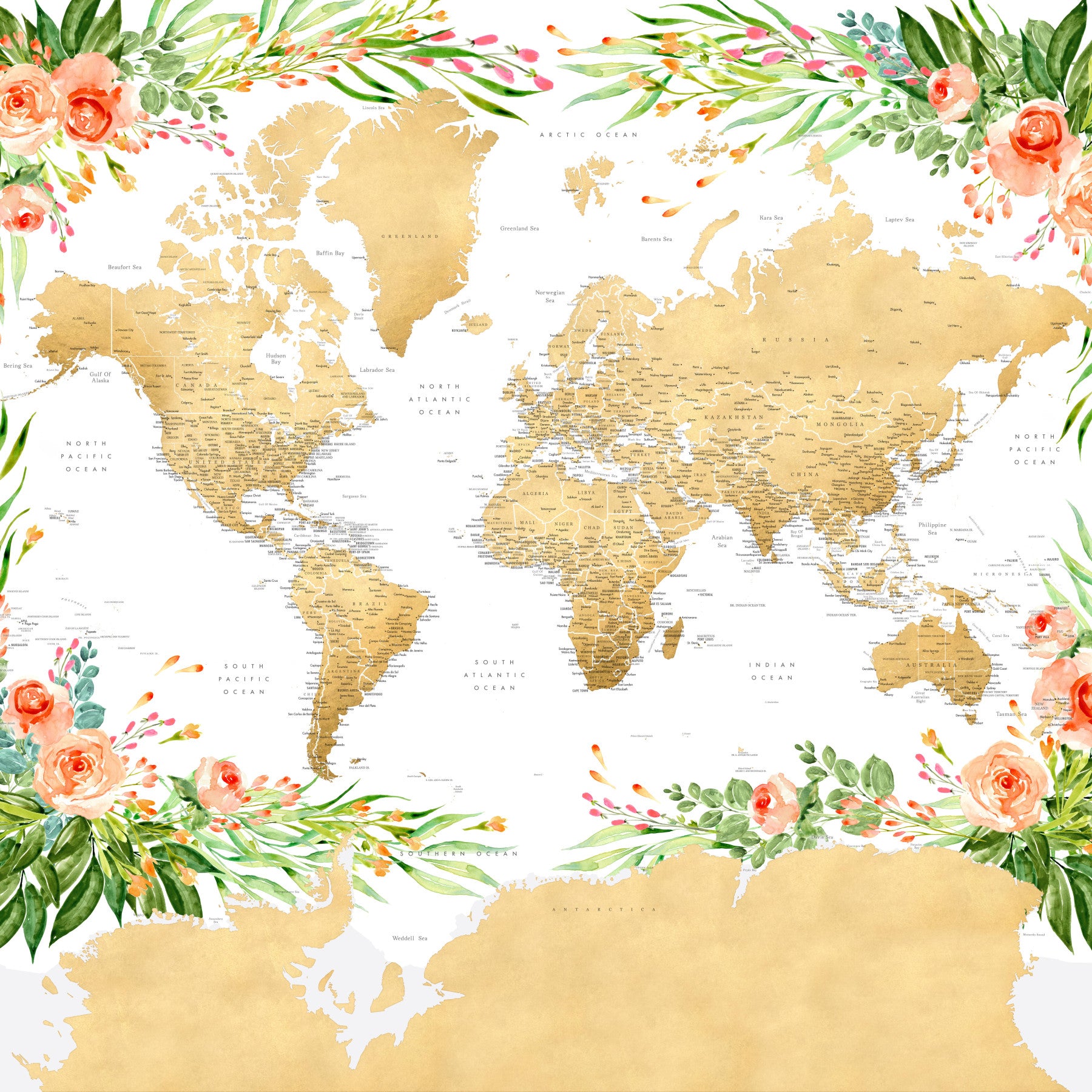 Add charm and creativity to your space with the Floral Bohemian World Map Wallpaper. This vibrant wall mural features warm golden continents framed by blooming watercolor florals, perfect for nurseries, creative corners, or cozy reading nooks. The design blends world geography with a soft botanical twist, making it ideal for those who enjoy travel-inspired decor with a playful vibe. Clear country names and soft tones help it suit both kids’ rooms and boho-style interiors. It brings both learning and beauty to your walls, offering a stylish way to spark imagination and showcase a love for nature and the world.